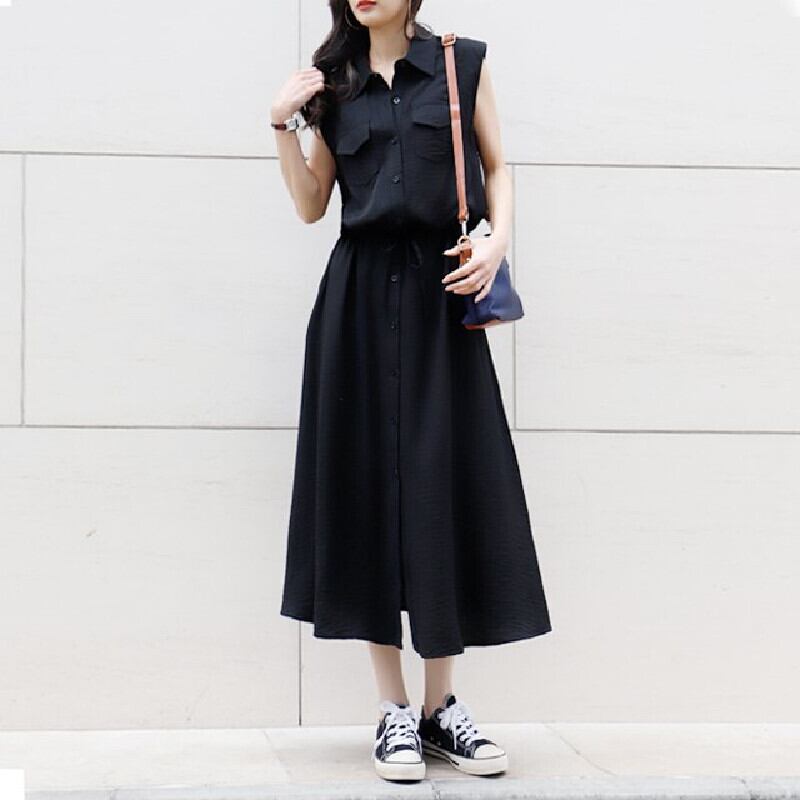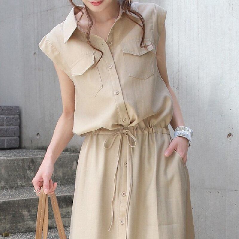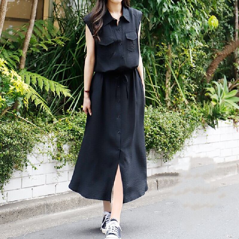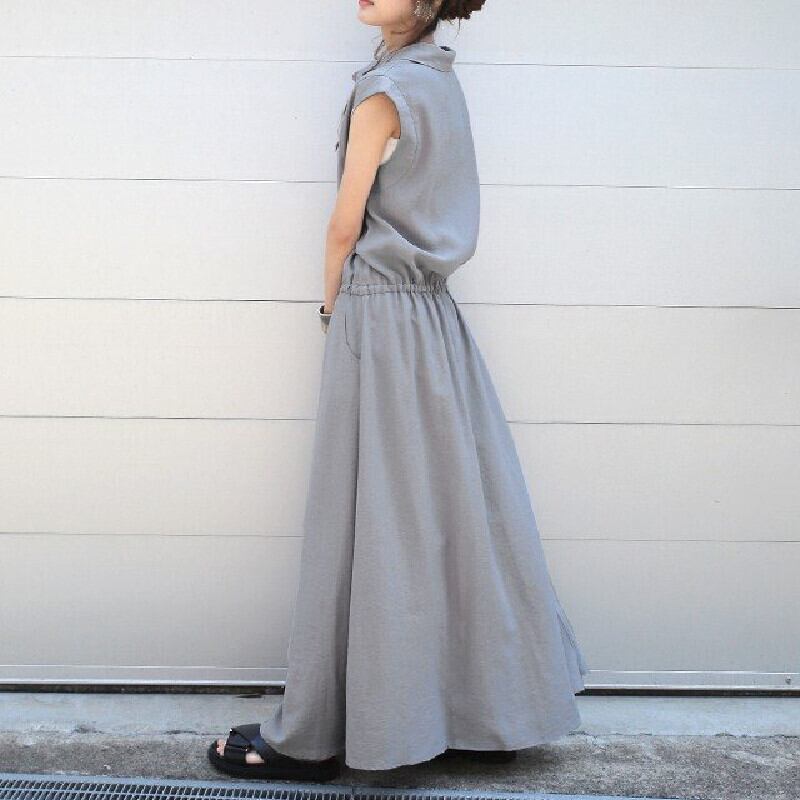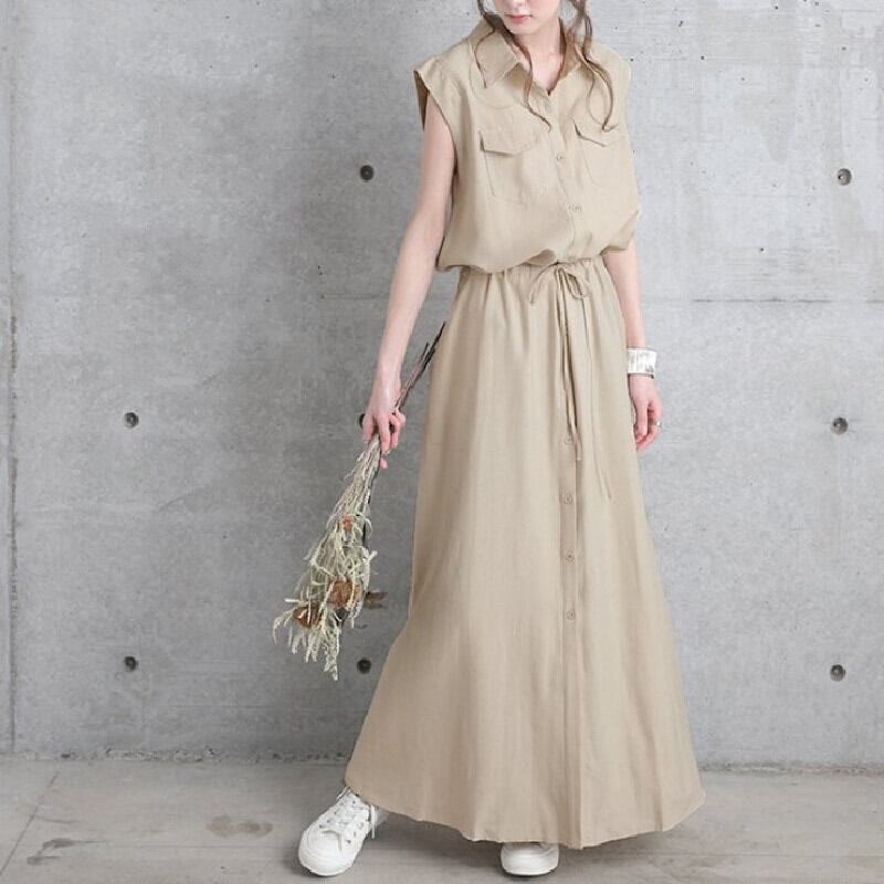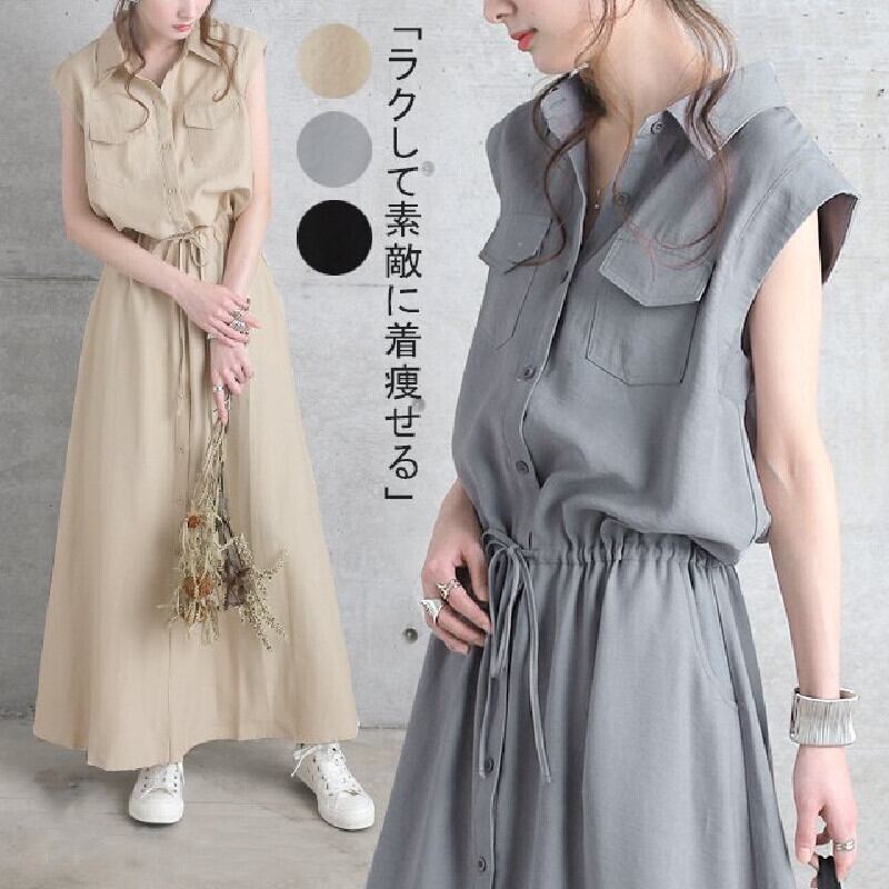 3カラー選択無袖ゆったりコーデしやすいロングデートワンピース【DL-2669】
