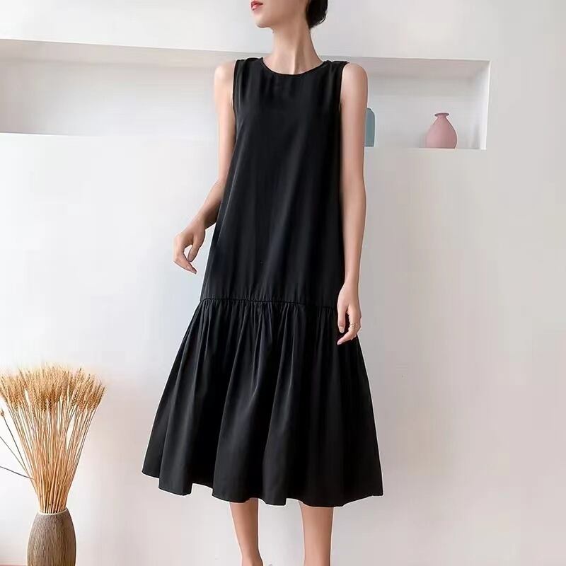 無地大振りフリル裾切り替えデザインスタイルゆったりカジュアルワンピース【DL-2685】