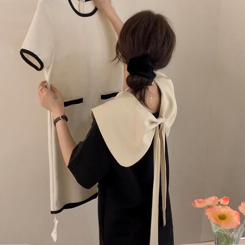 レデイースファッション配色半袖ゆったりカジュアルワンピース【DL-2690】