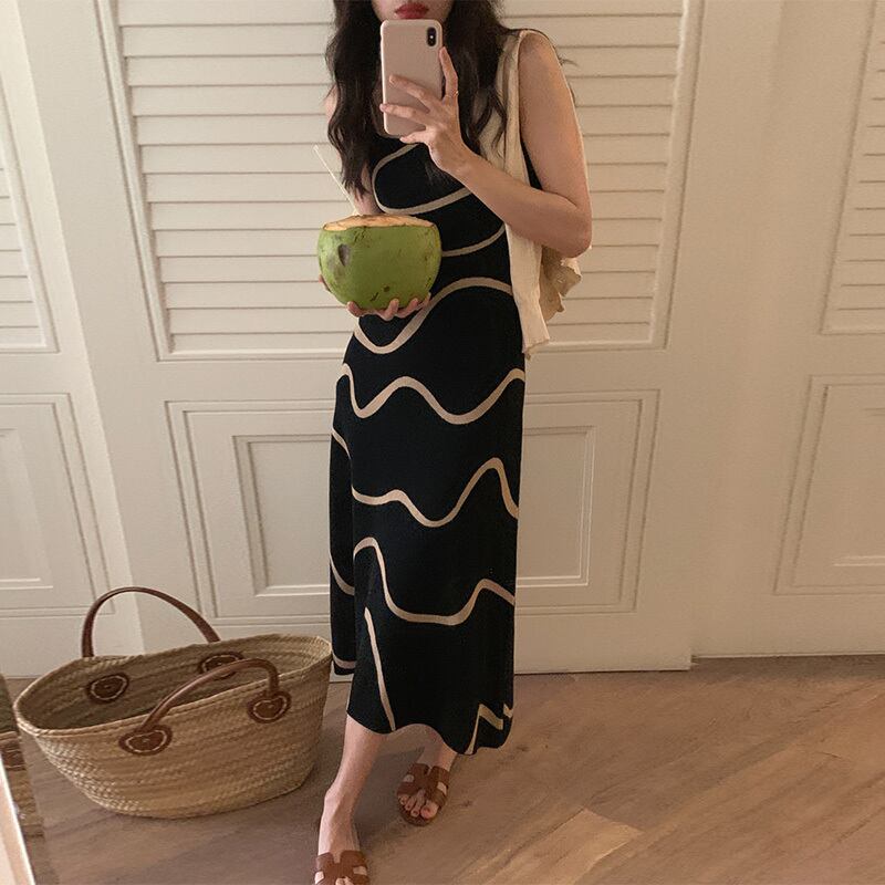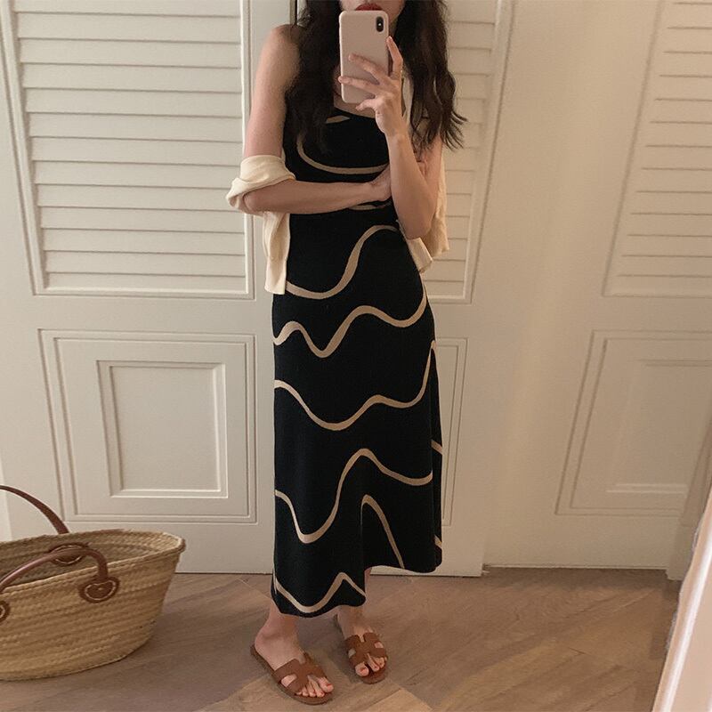 フランスファッションストライプ不規則デザインスリップデートワンピース【DL-2695】