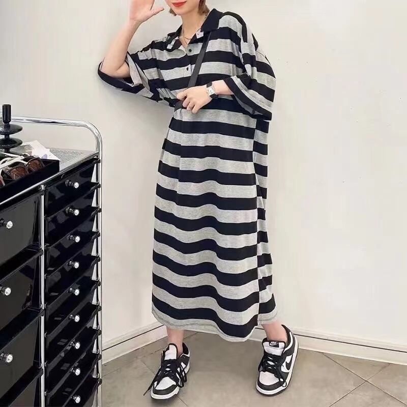 けだるい風気質ストライプゆったりカジュアルワンピース【DL-2702】
