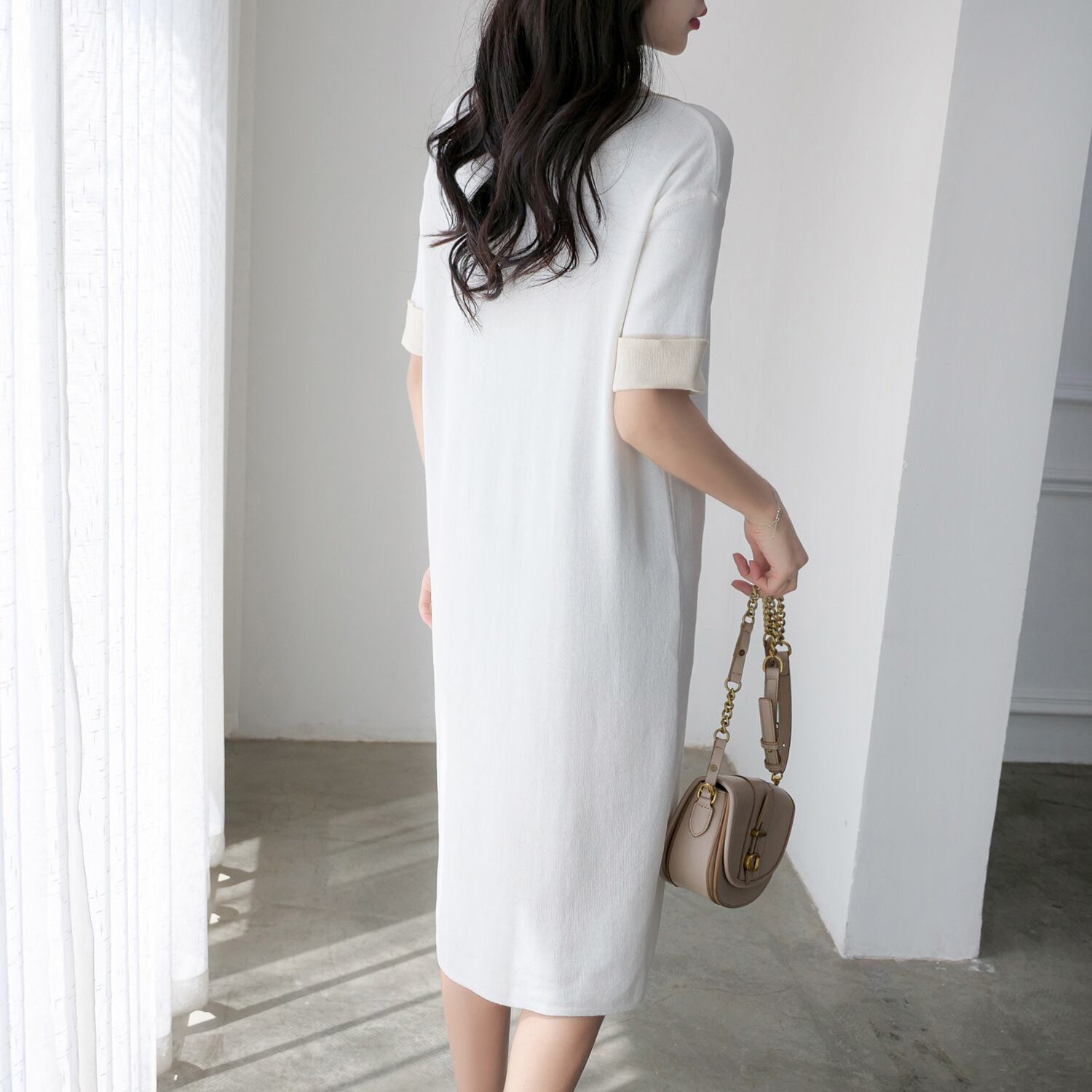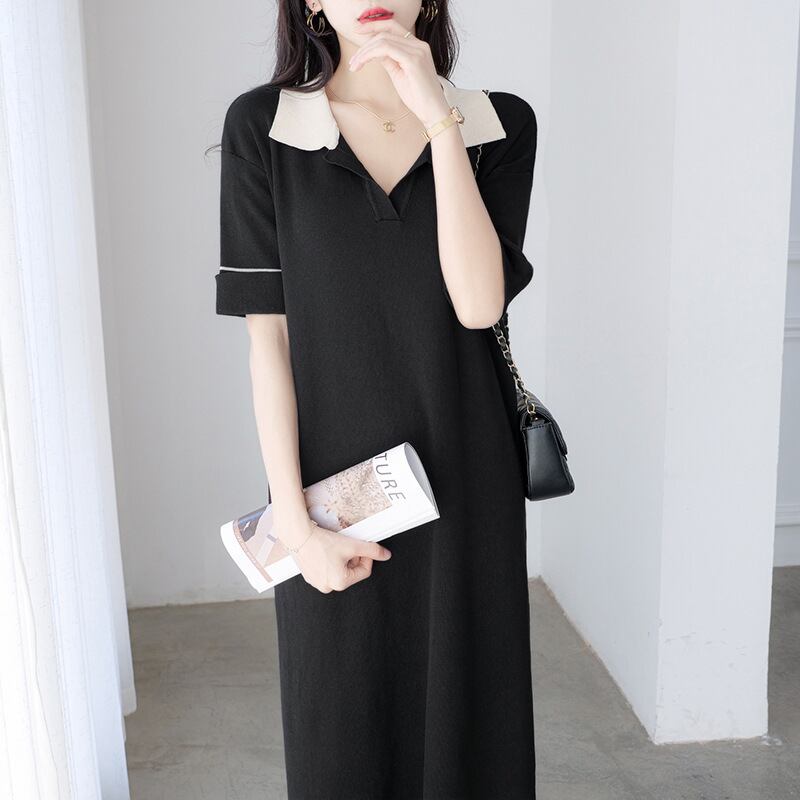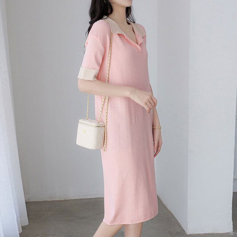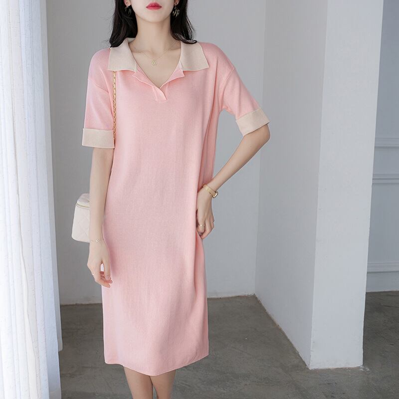 エレガント女性ファッション配色ニットカジュアルワンピース【DL-2707】