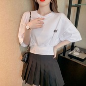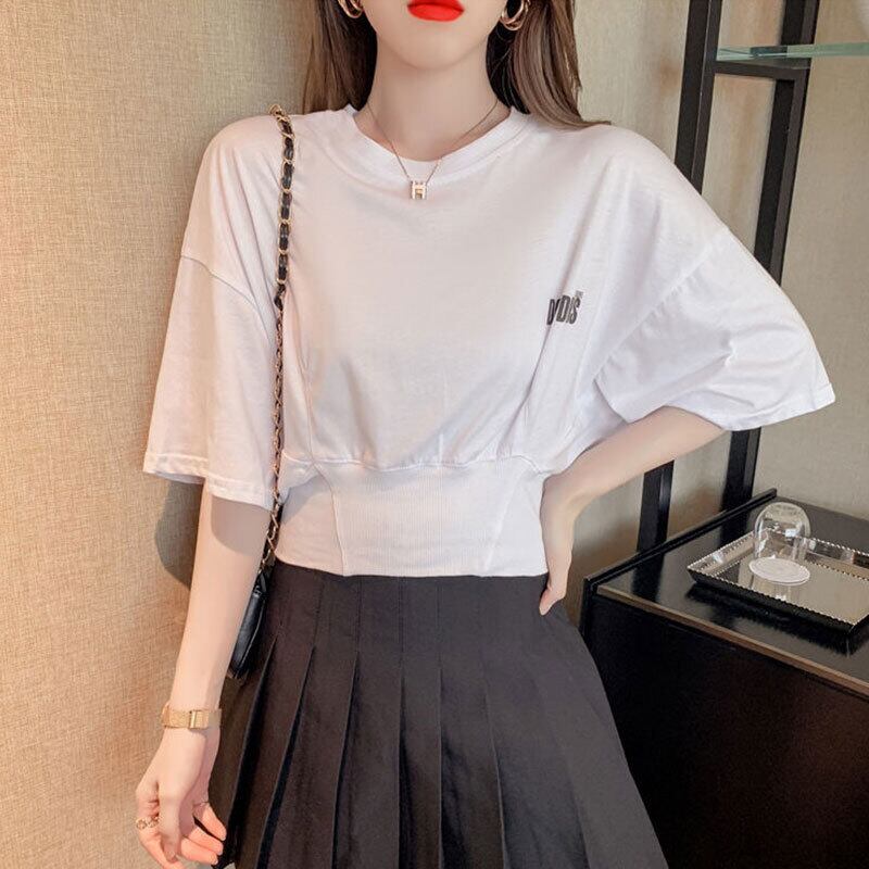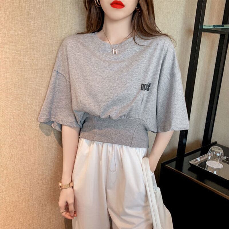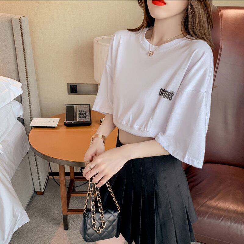 ゆったりコーデしやすい半袖ハイウエストTシャツトップス【DL-2720】