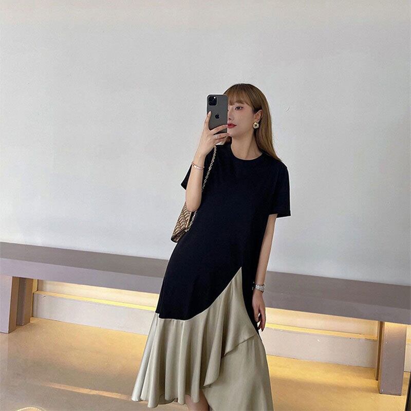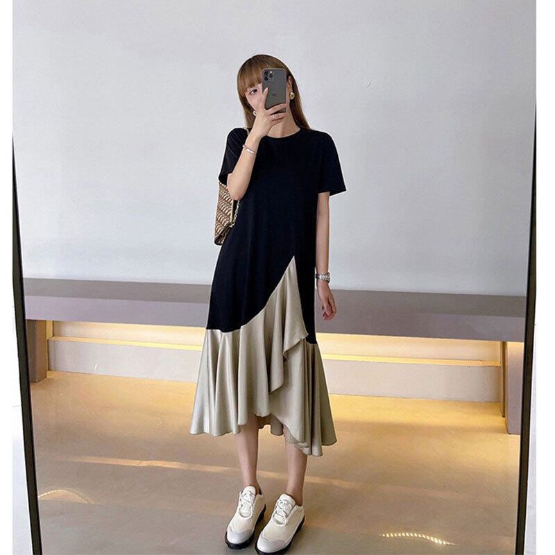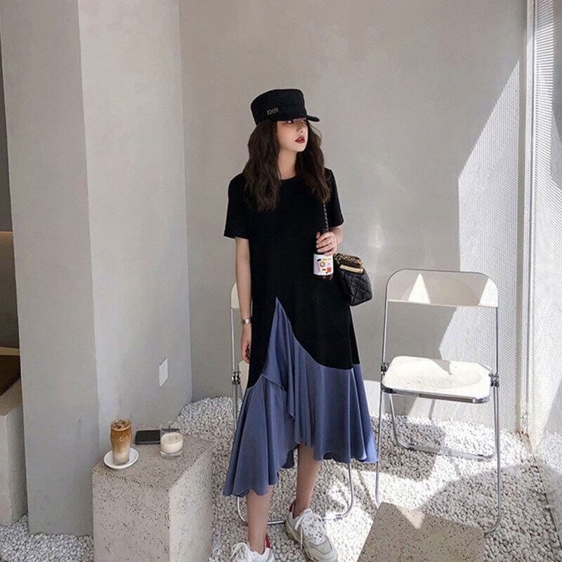 フリル裾切り替えデザイン感レデイースファッションカジュアルワンピース【DL-2722】