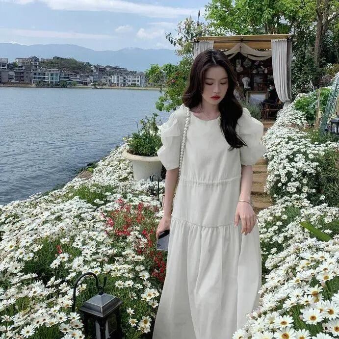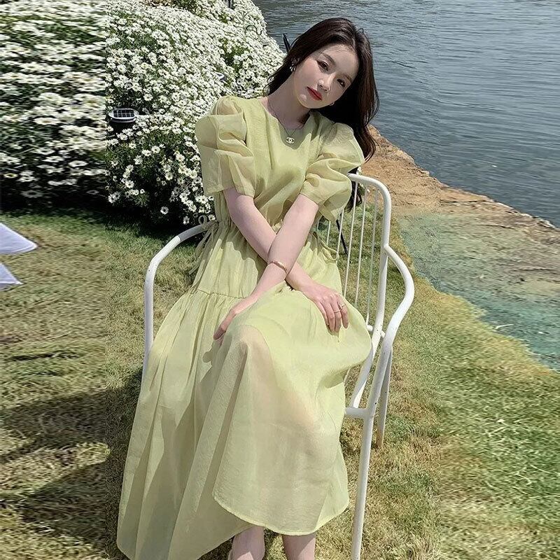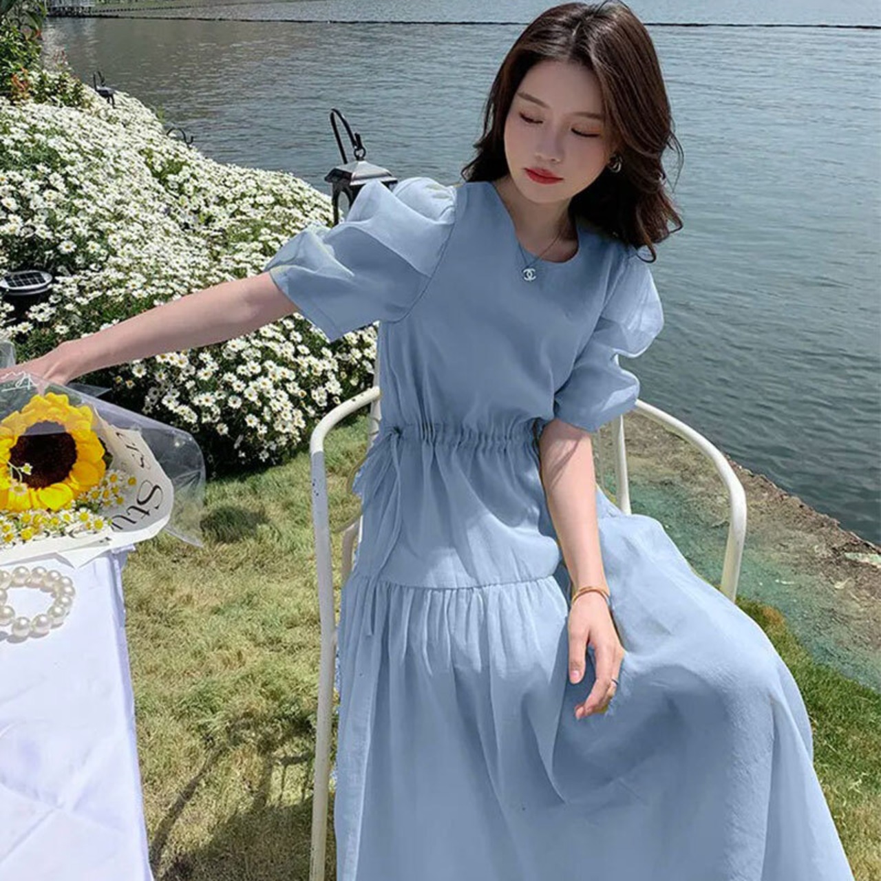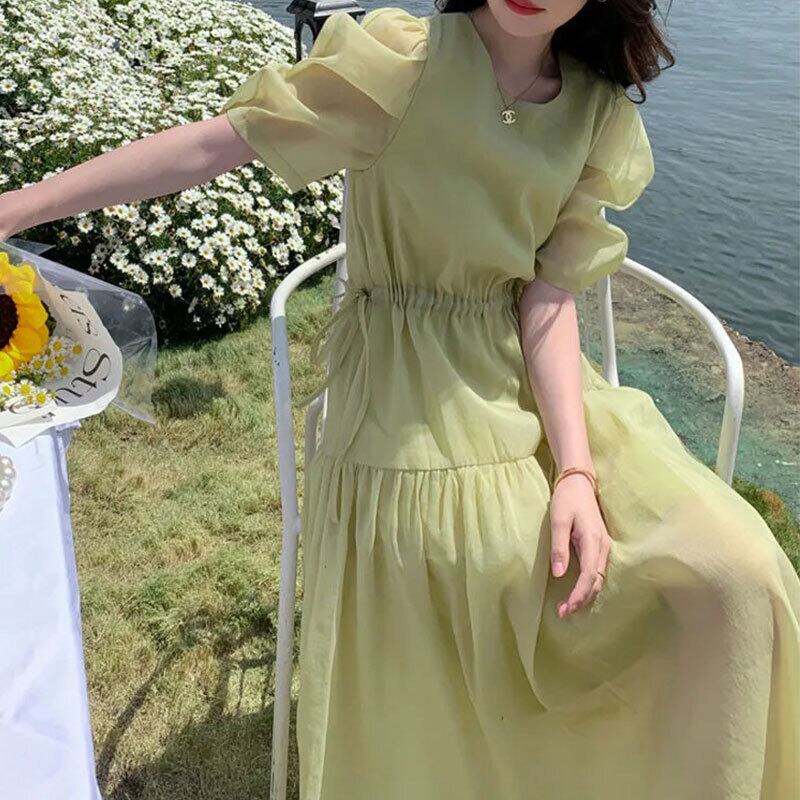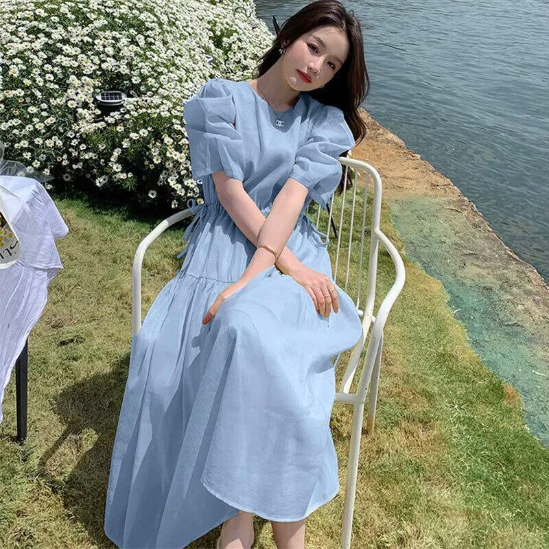 人気沸騰パフスリーブファッションロングデートワンピース【DL-2730】