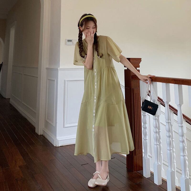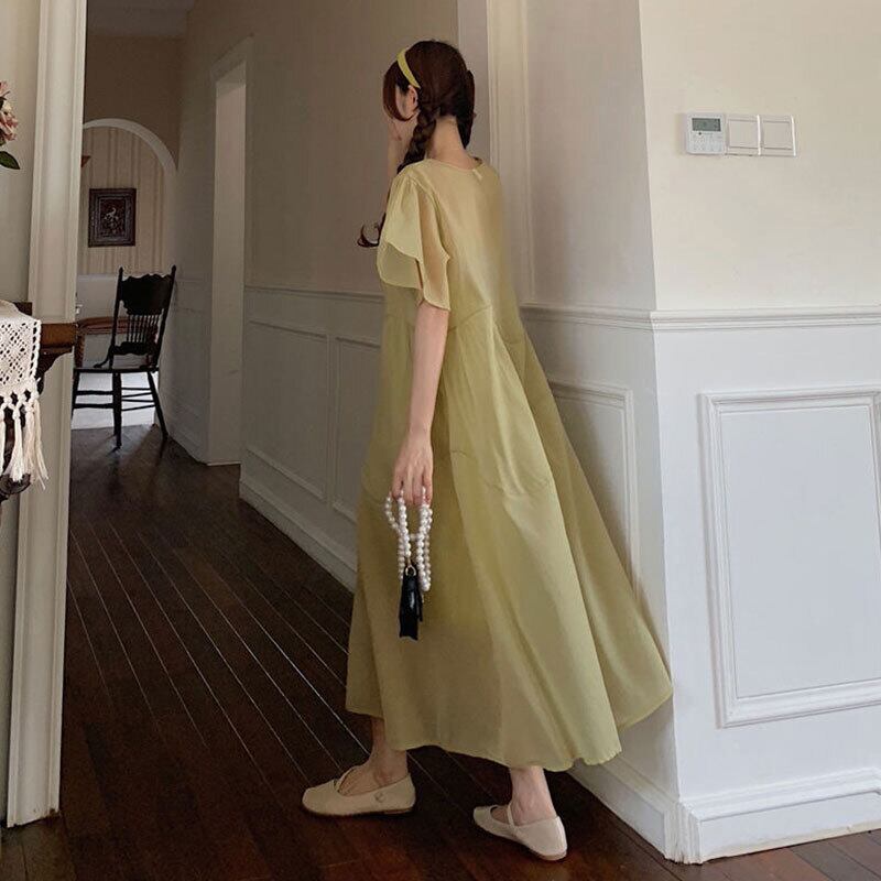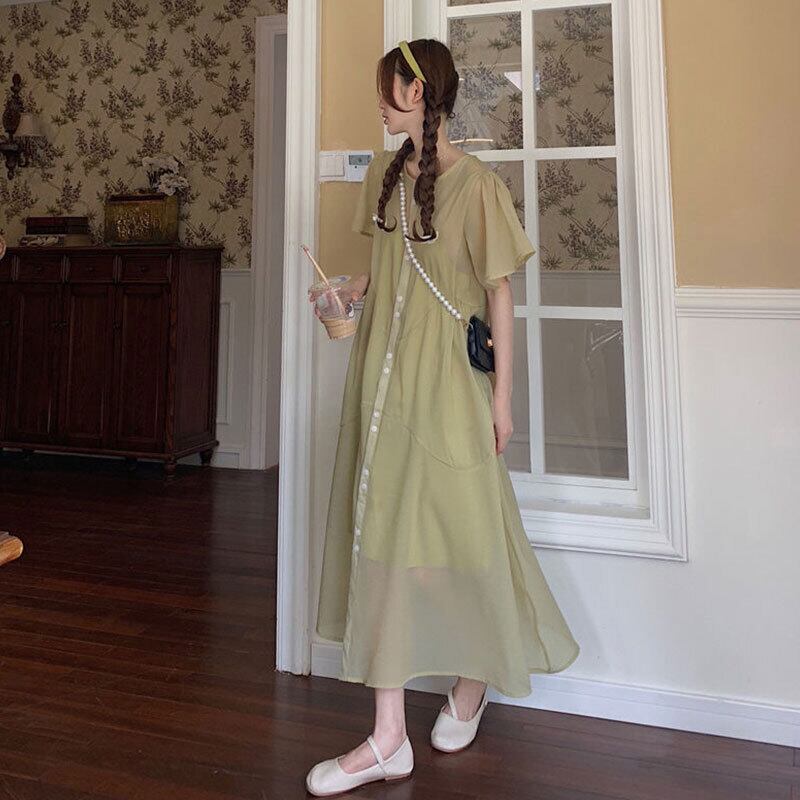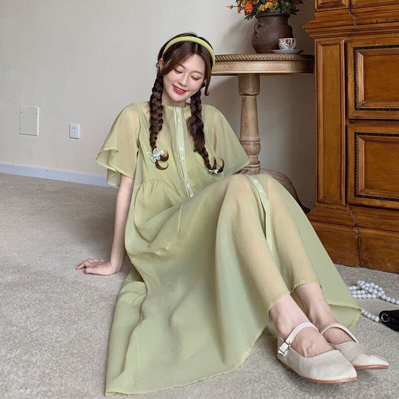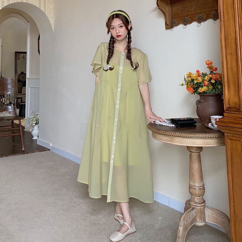 ファッションフレンチ袖カジュアルワンピース&無地スリップワンピースセットアップ【DL-2733】