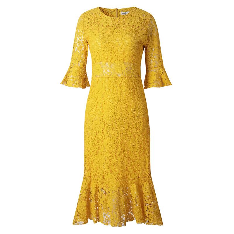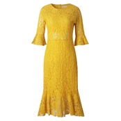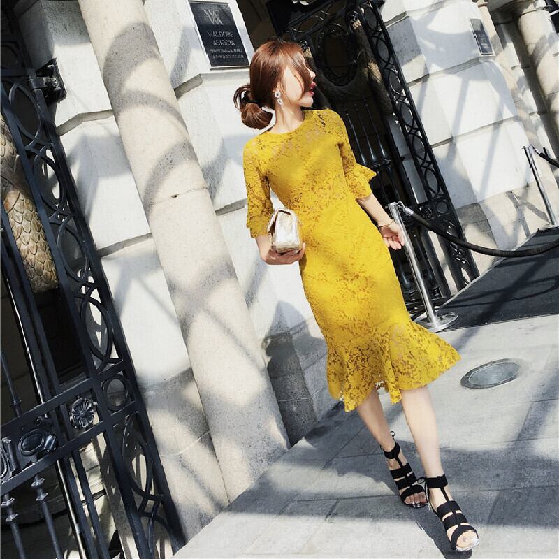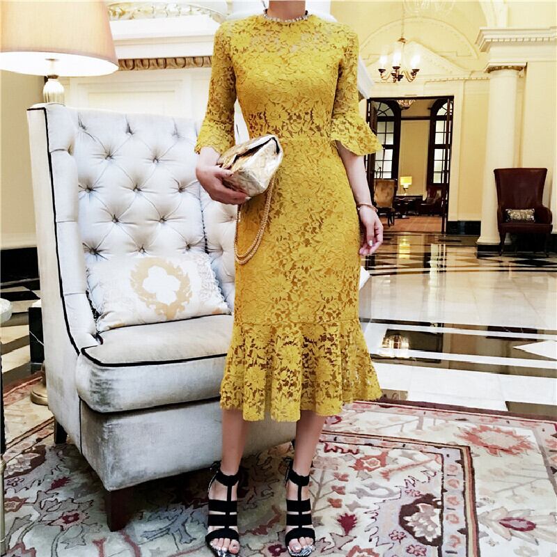 花柄レース透かし彫りトランペットスリーブデートワンピース【DL-2752】