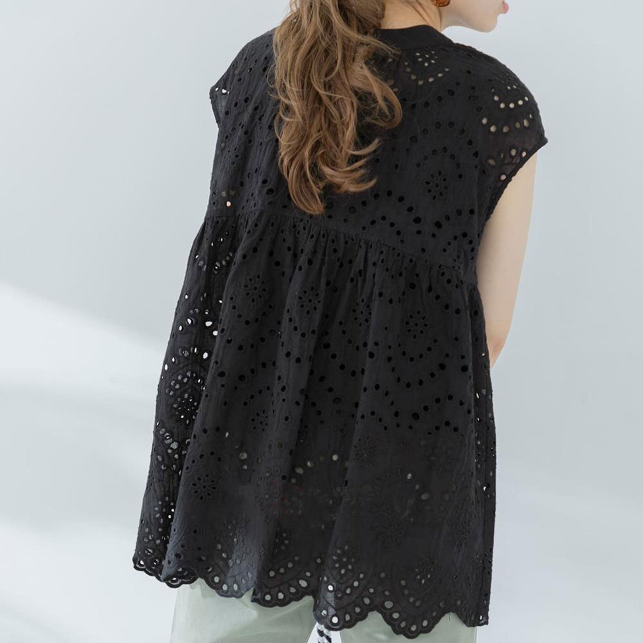 フリル裾透かし彫り刺繍シャツ・ブラウストップス【DL-2761】