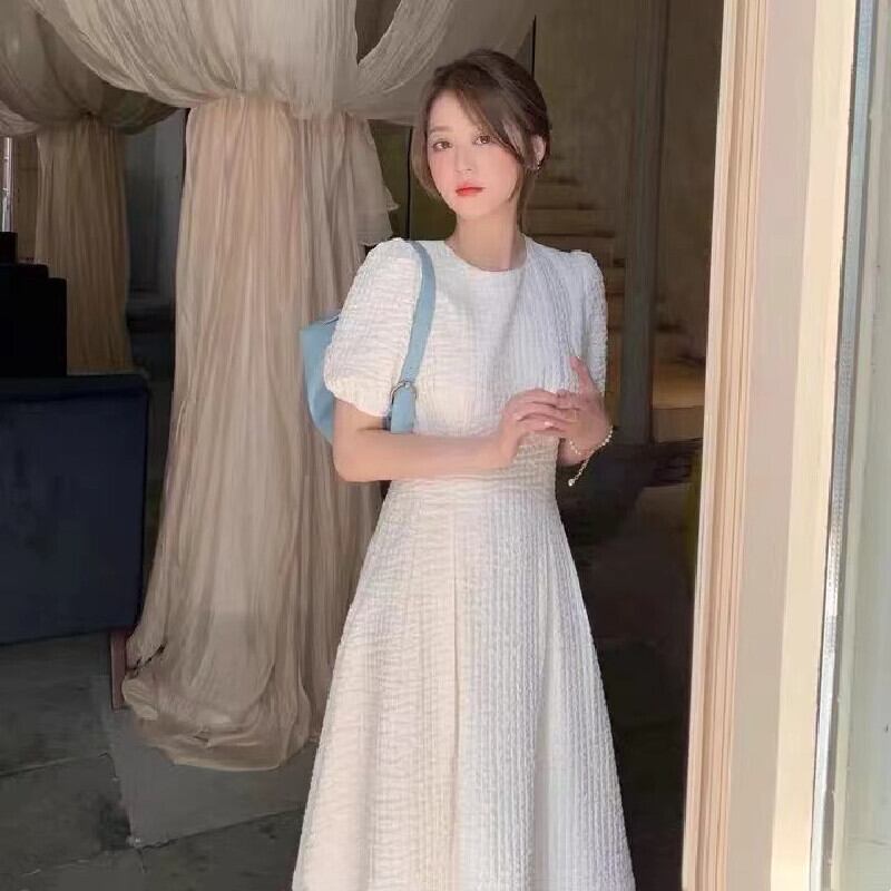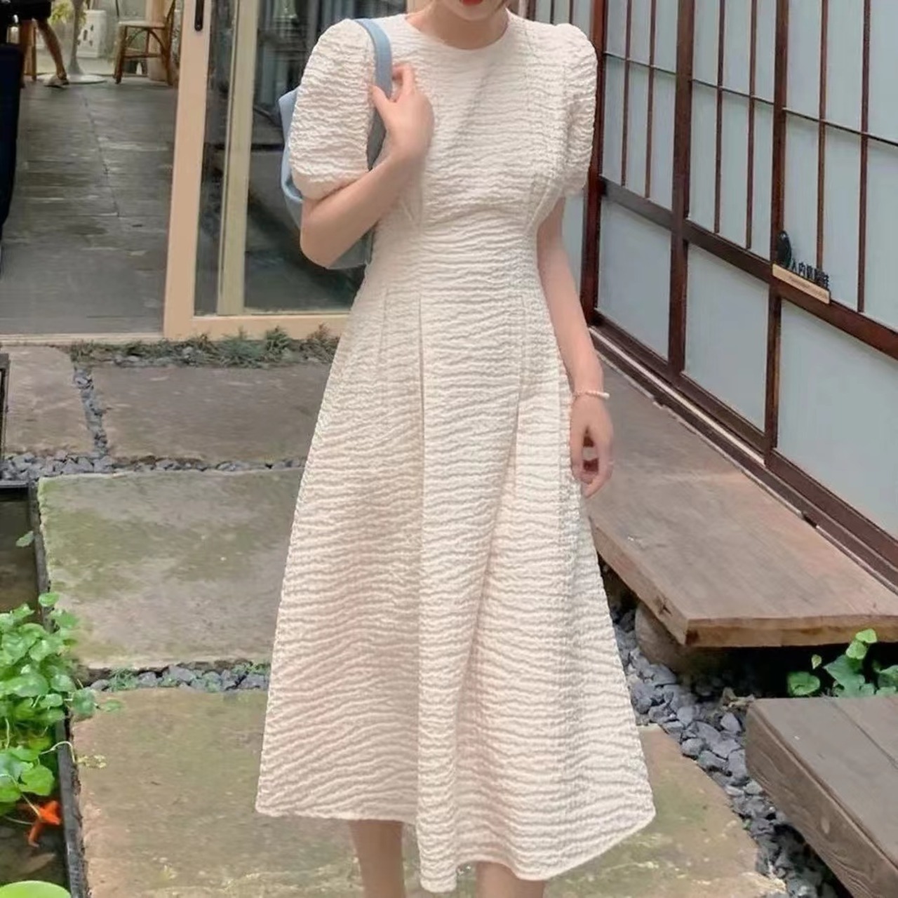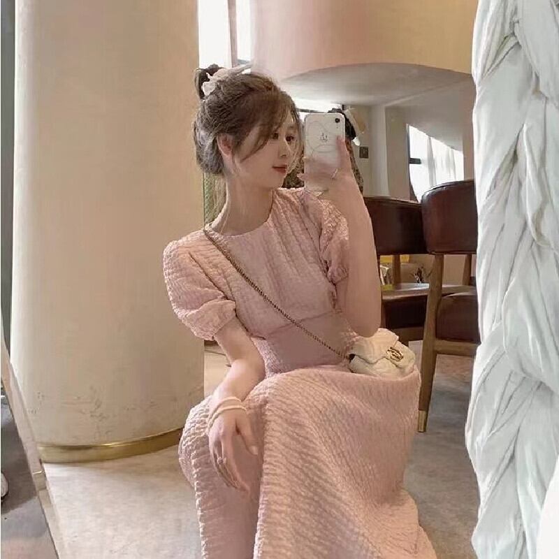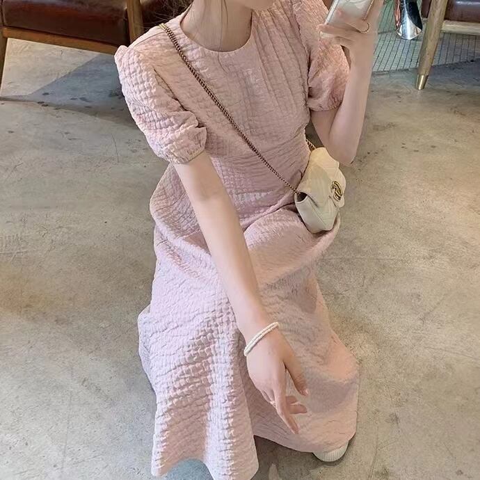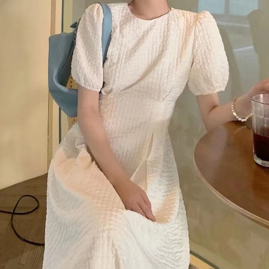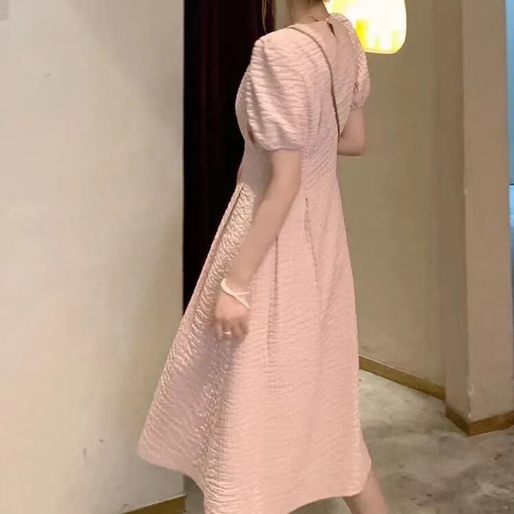 フランスファッションチェック柄パフスリーブデートワンピース【DL-2768】