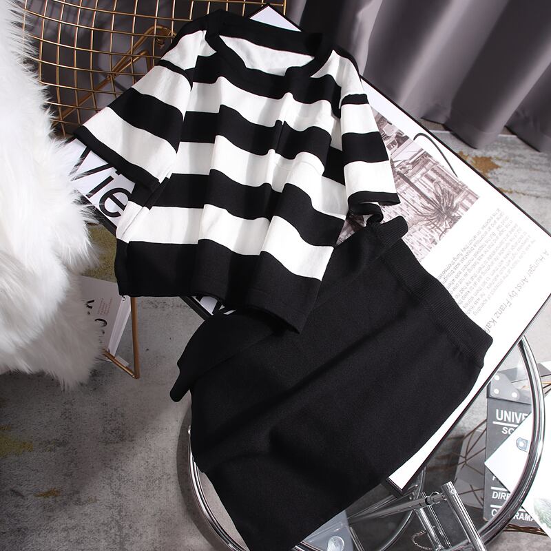 ニットセーターゆったりトップス&無地合わせやすいスカートセットアップ【DL-2788】