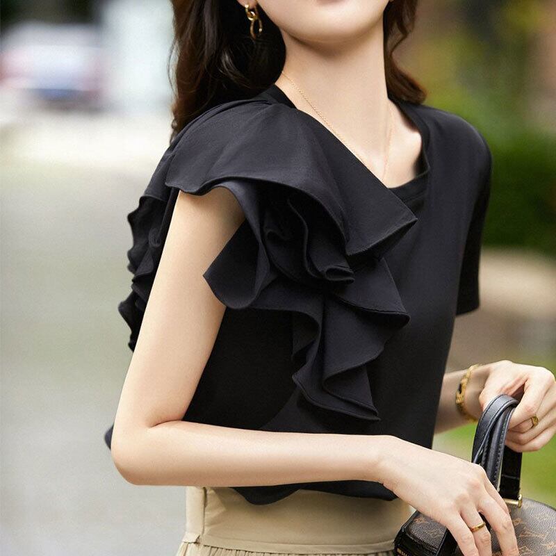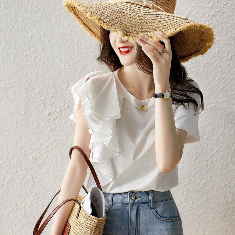 不規則フリル裾切り替え合わせやすいTシャツトップス【DL-2799】