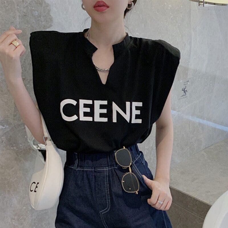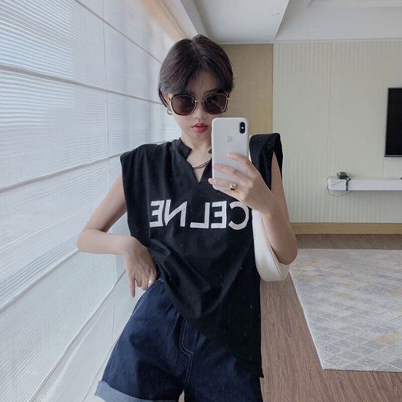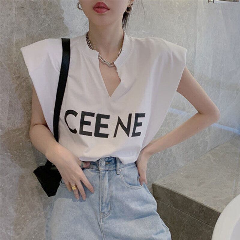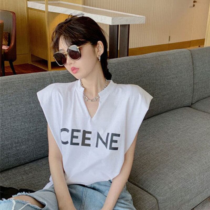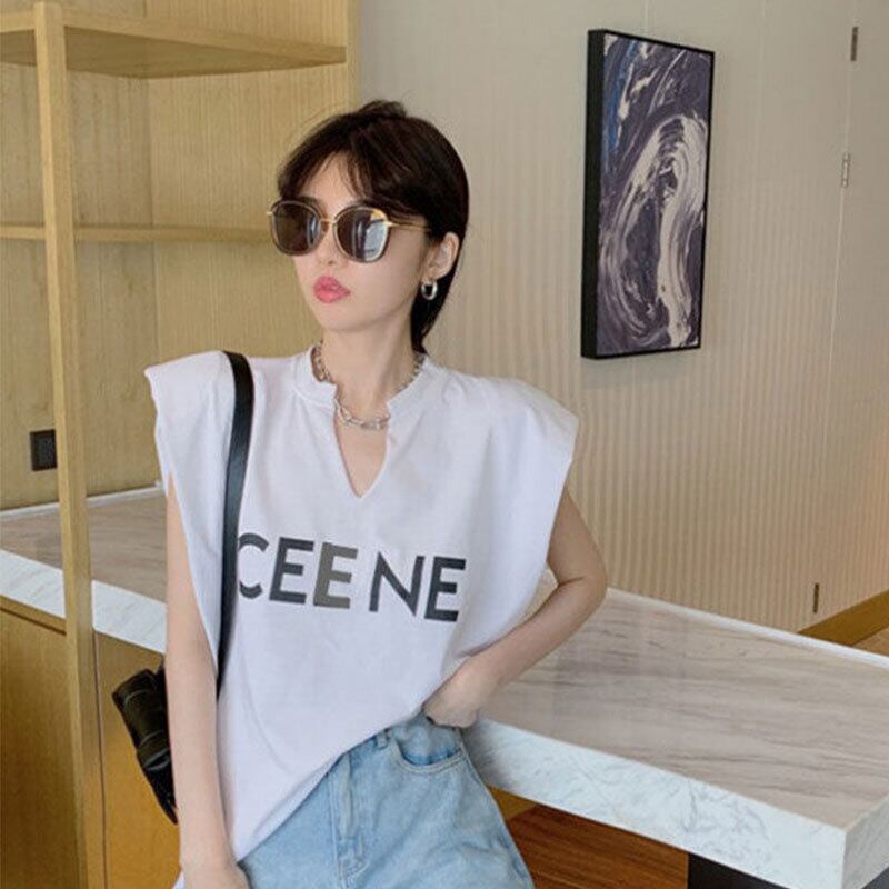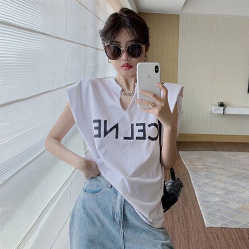 無袖コーデしやすい無地字母プリントTシャツトップス【DL-2803】