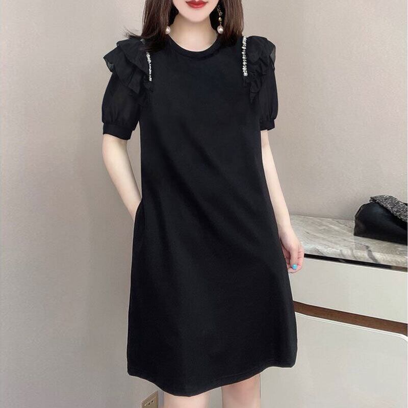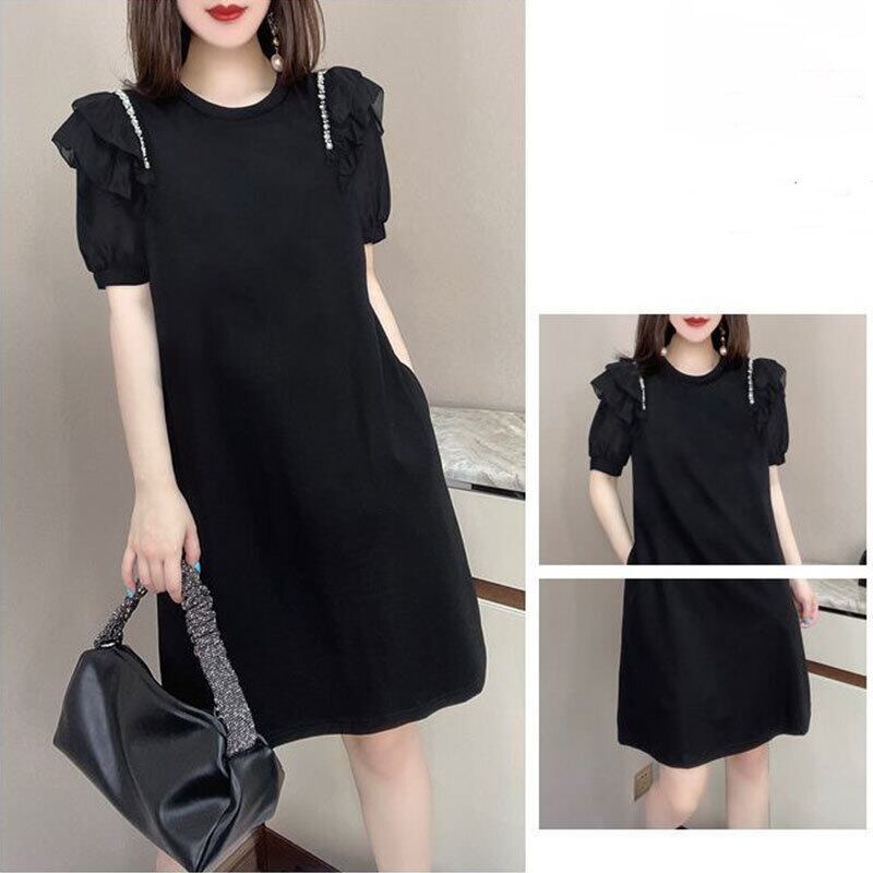 フリル裾切り替えパフスリーブ半袖デートワンピース【DL-2809】