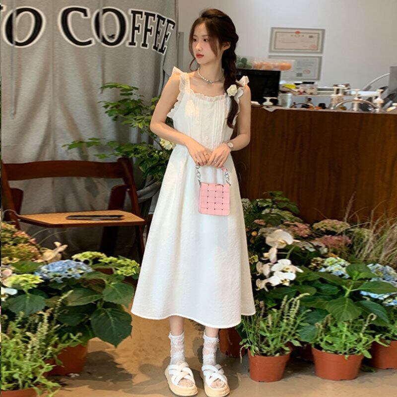 フリル裾フレンチ袖無地無袖スリップデートワンピース【DL-2813】
