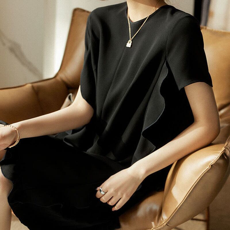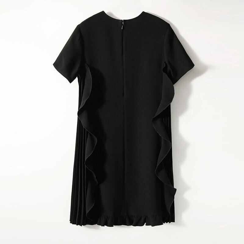 エレガントフリル裾ブラック無地カジュアルワンピース【DL-2820】