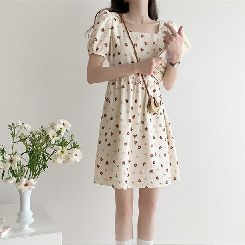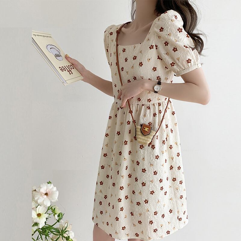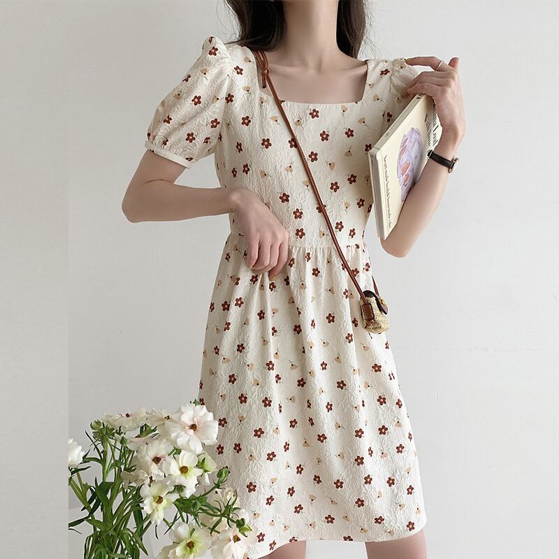 優しい雰囲気ファッション花柄パフスリーブデートワンピース【DL-2848】