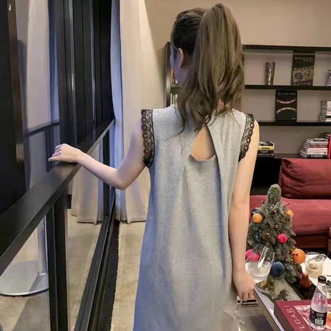 フリル裾レース切り替え無袖ゆったりカジュアルワンピース【DL-2852】