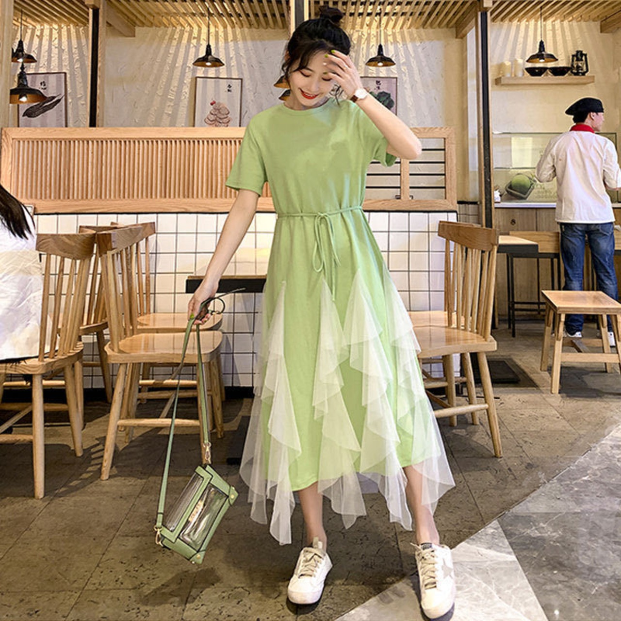 メッシュ切り替えデザインゆったりカジュアルワンピース【DL-2860】