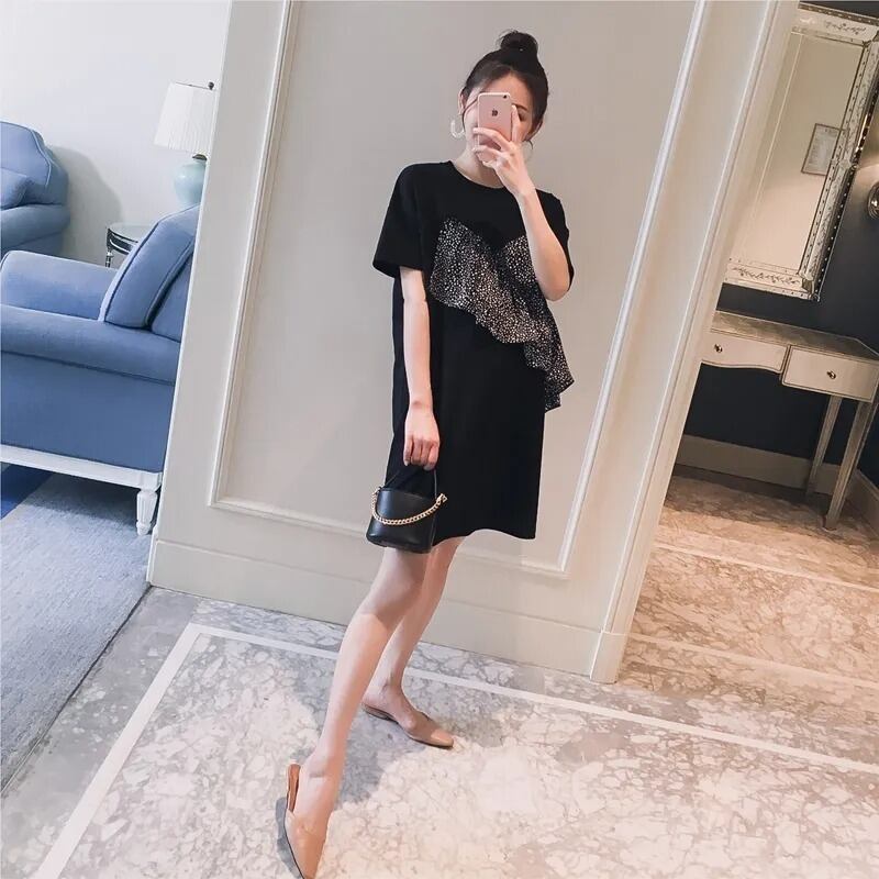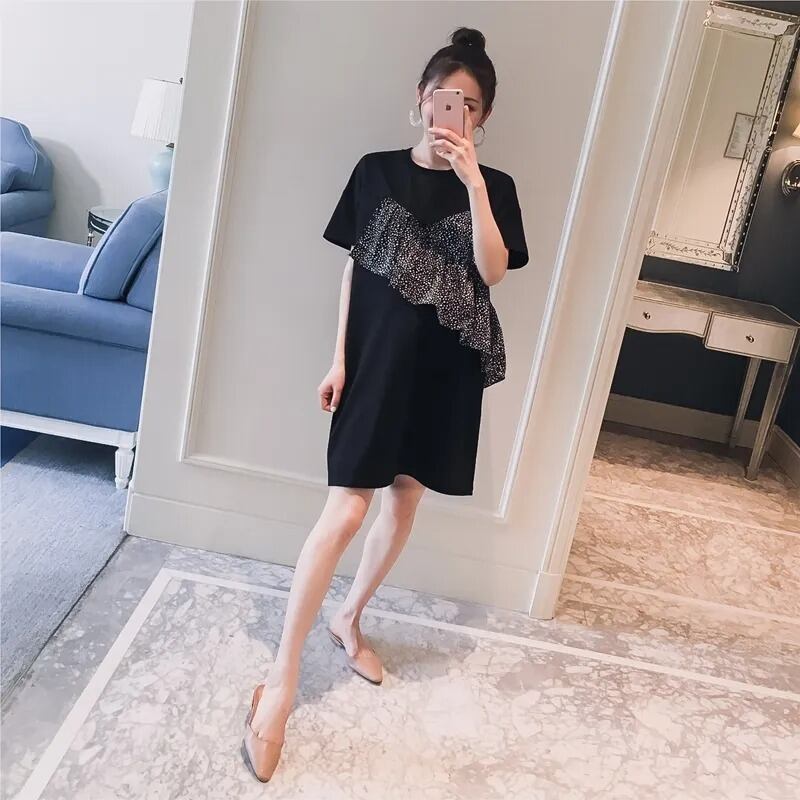 水玉フリル裾切り替えデザインゆったりカジュアルワンピース【DL-2861】