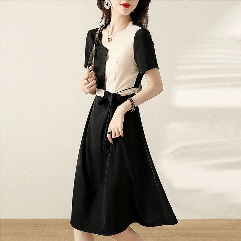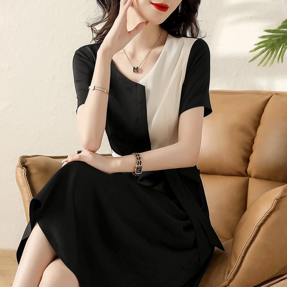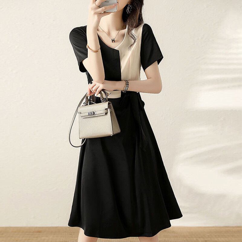 高級感配色切り替えデザイン感着痩せ効果デートワンピース【DL-2875】