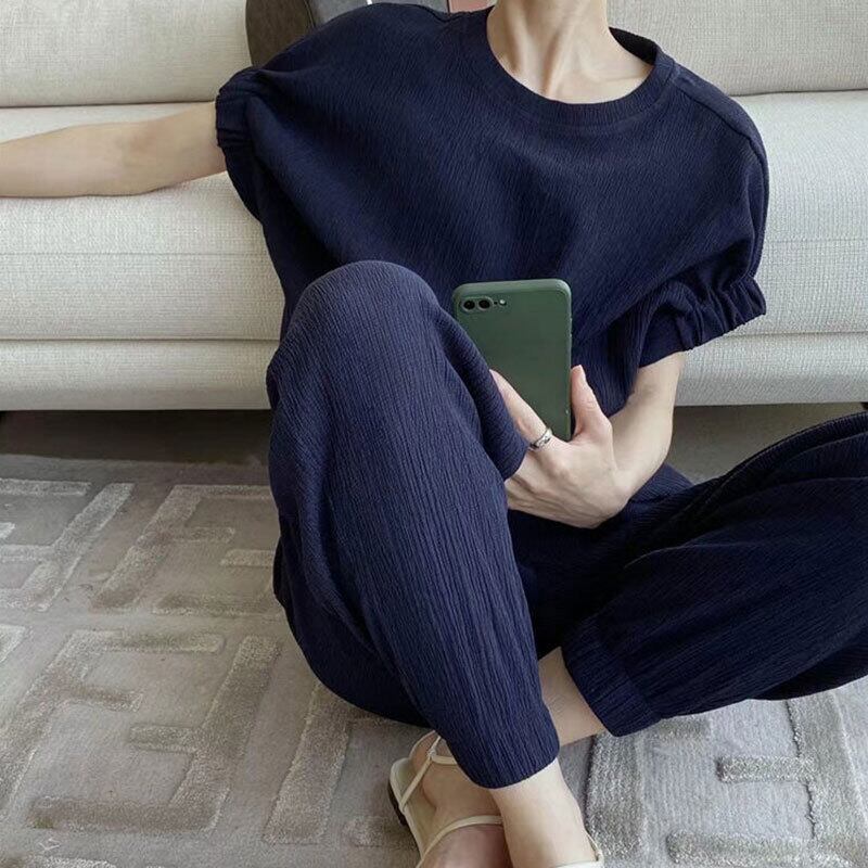 けだるい風気質無地Tシャツトップス&無地ゆったりパンツセットアップ【DL-2882】
