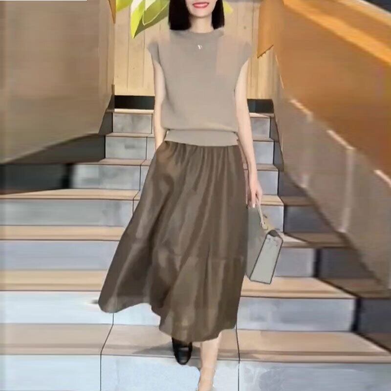 高級感無地ファッショントップス&無地ロングスカートセットアップ【DL-2885】
