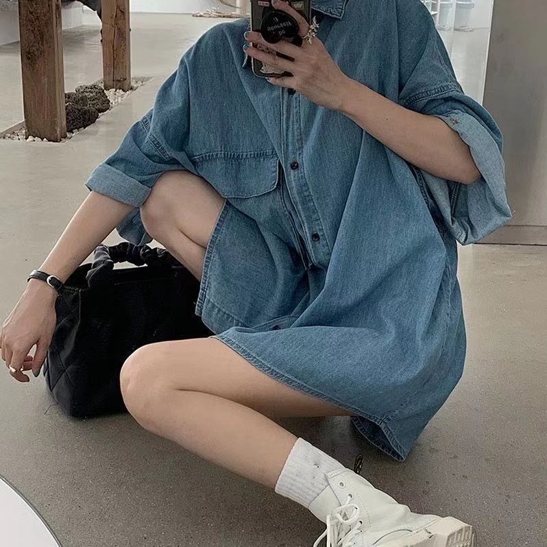 レトロデザイン感レデイースファッションデニムシャツ・ブラウストップス【DL-2889】