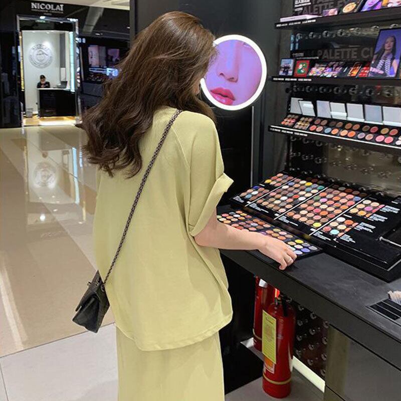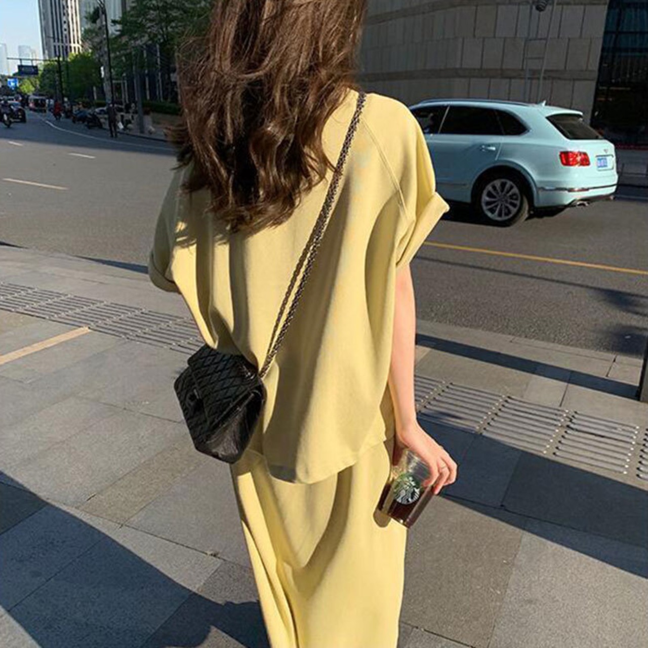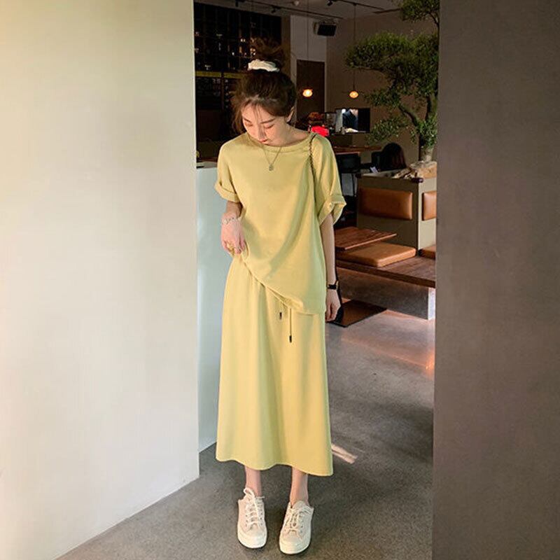けだるい風気質無地Tシャツトップス&無地スカートセットアップ【DL-2890】
