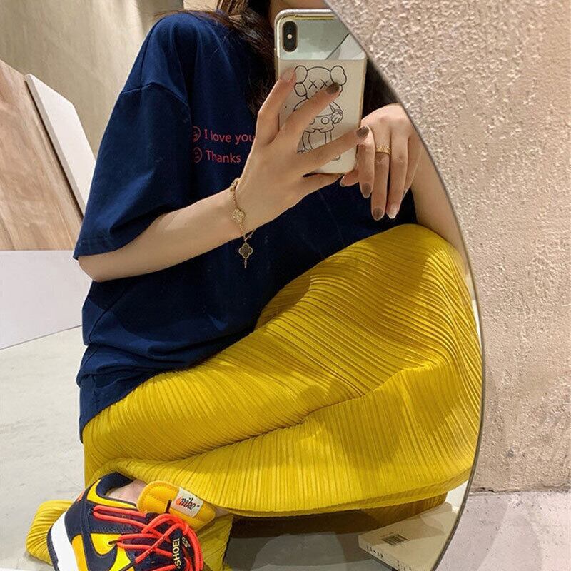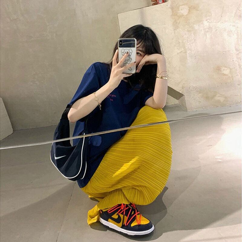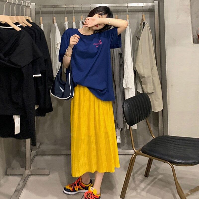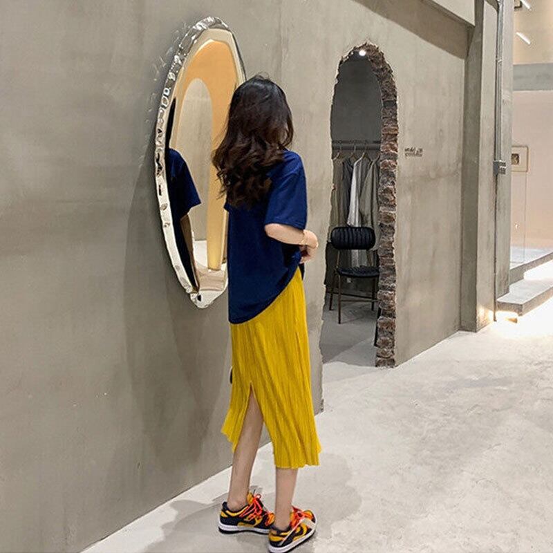 ネイビー無地ゆったりTシャツトップス&イエロースカートセットアップ【DL-2891】