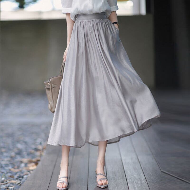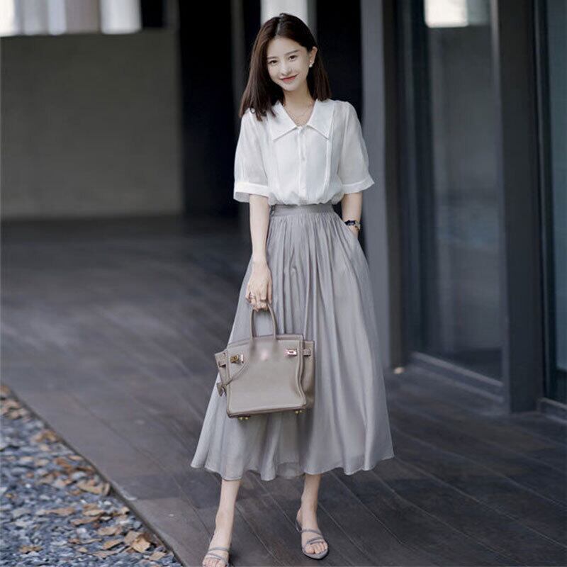 ホワイトシャツ·ブラウストップス&グレースカートセットアップ【DL-2899】