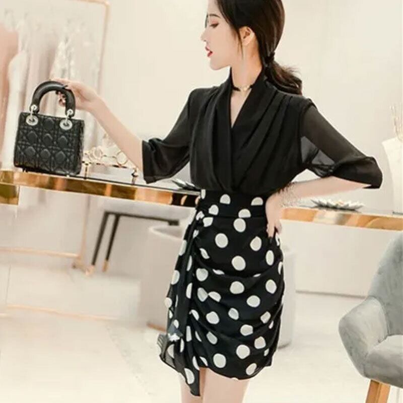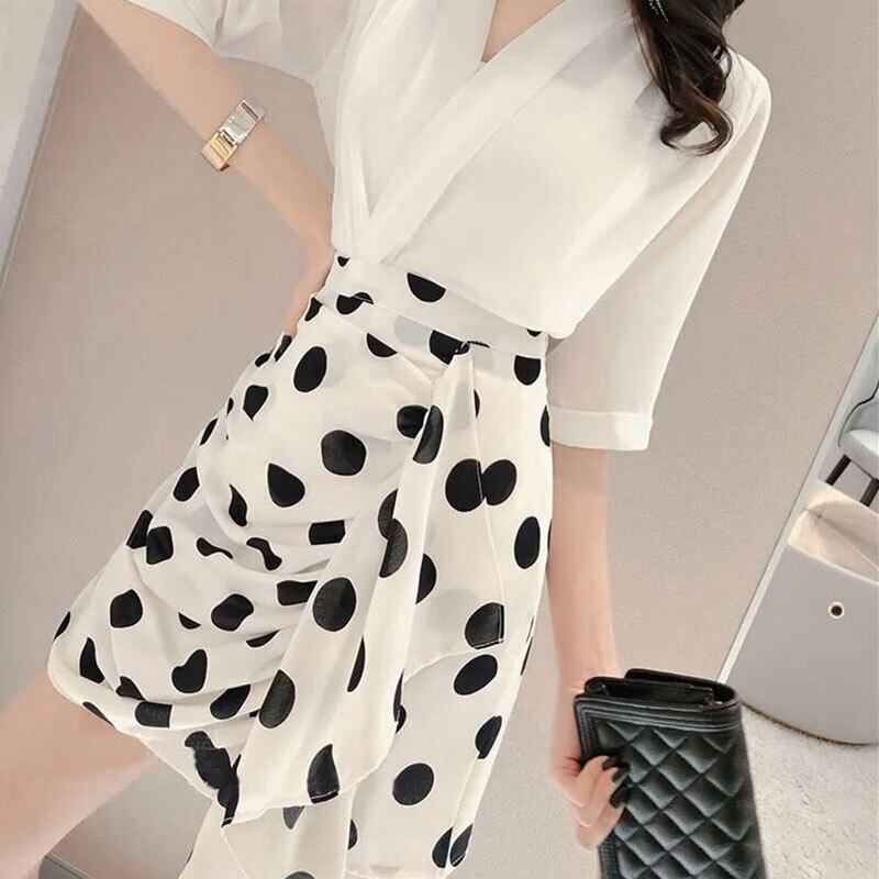 シャツ·ブラウストップス&ハイウエストスカートセットアップ【DL-2902】