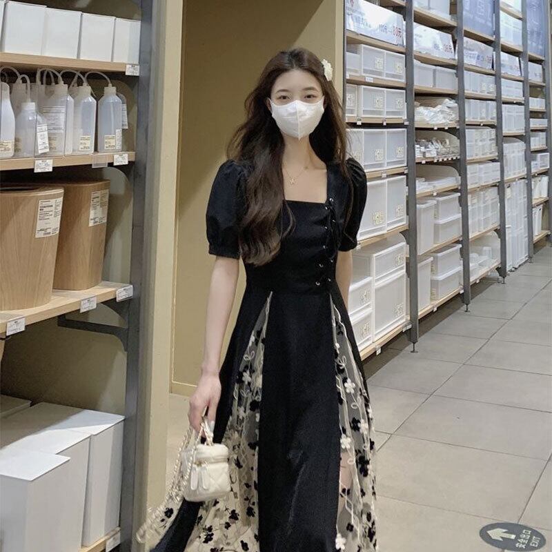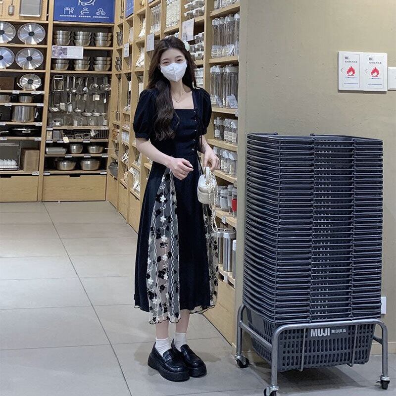 花柄メッシュ切り替えデザインファッションデートワンピース【DL-2906】