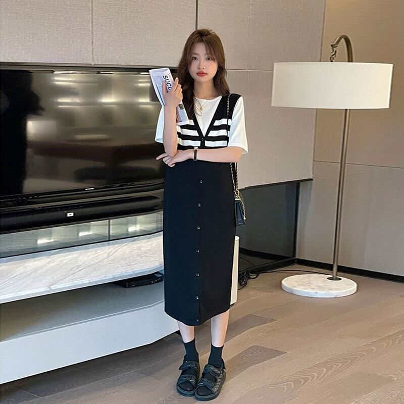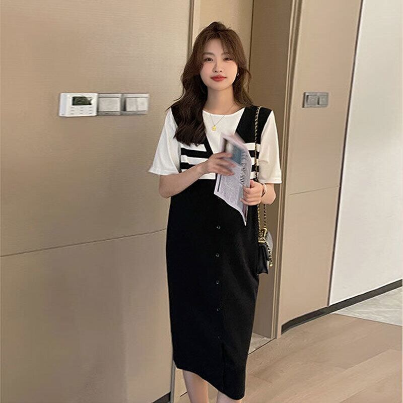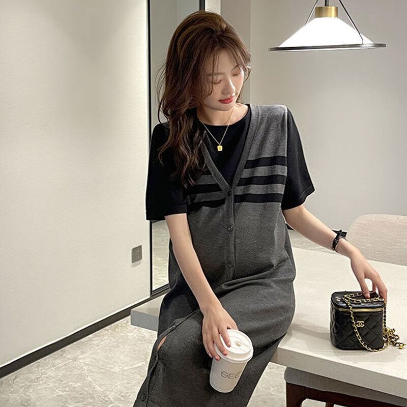 ゆったり切り替えデザインニットカジュアルワンピース【DL-2912】
