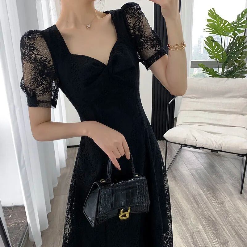 フランスレトロ花柄レースパフスリーブデートワンピース【DL-2920】
