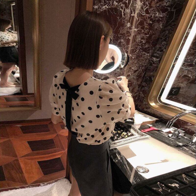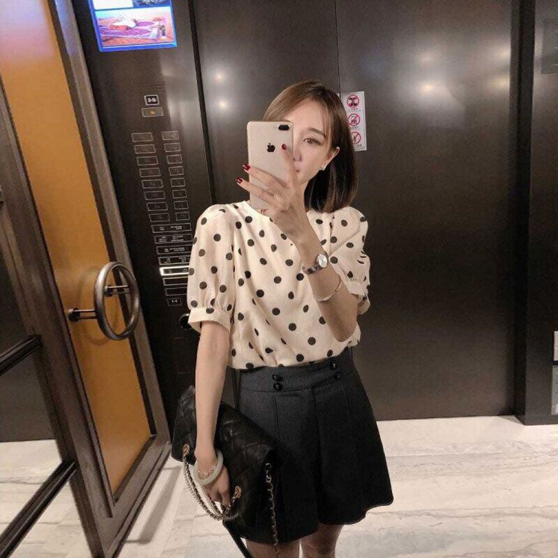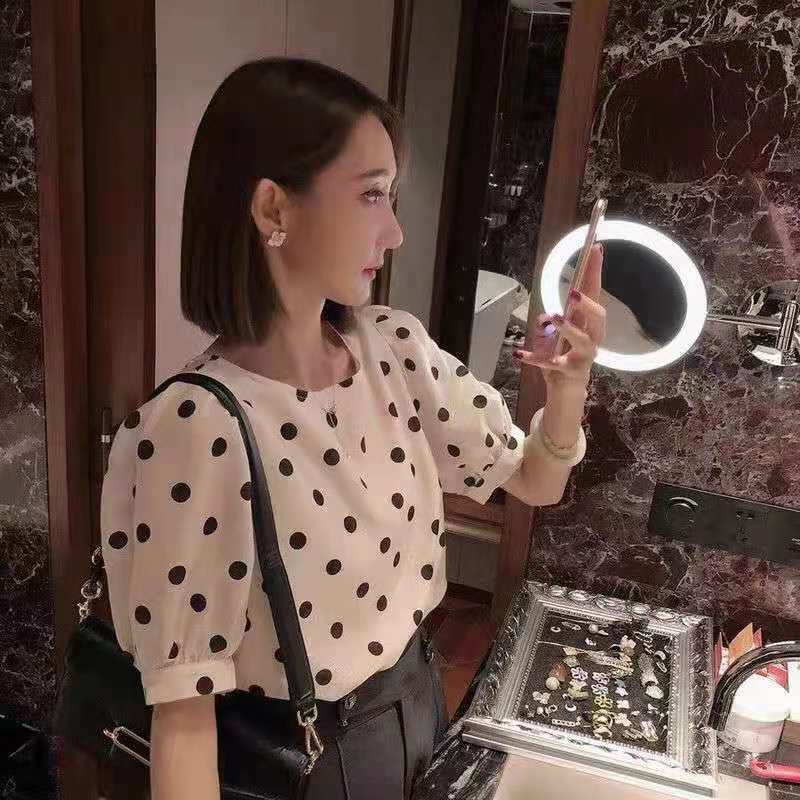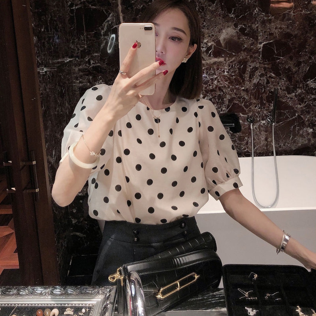 パフスリーブ水玉ゆったり着痩せ効果シフォンシャツトップス【DL-2930】