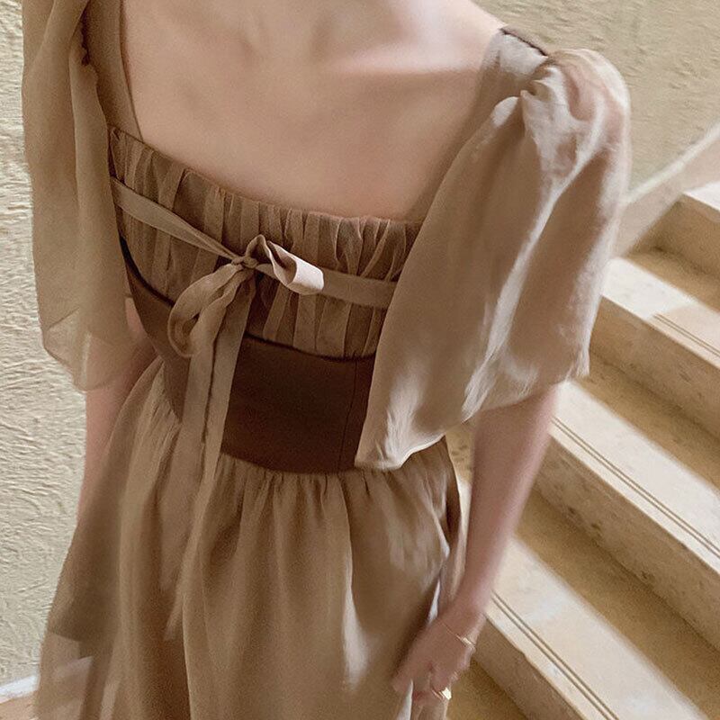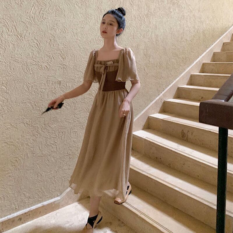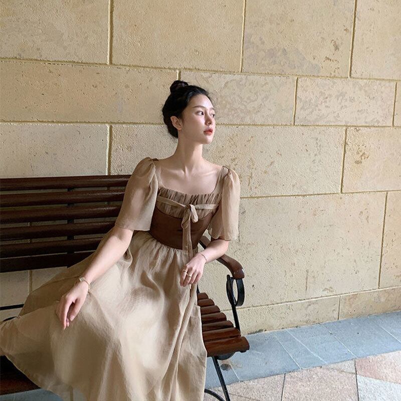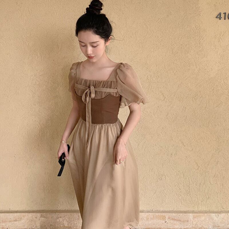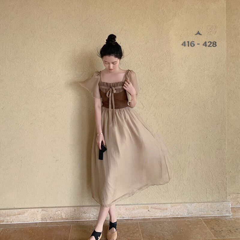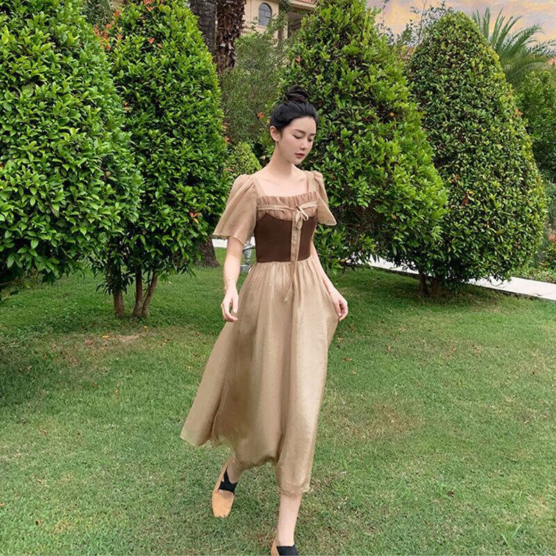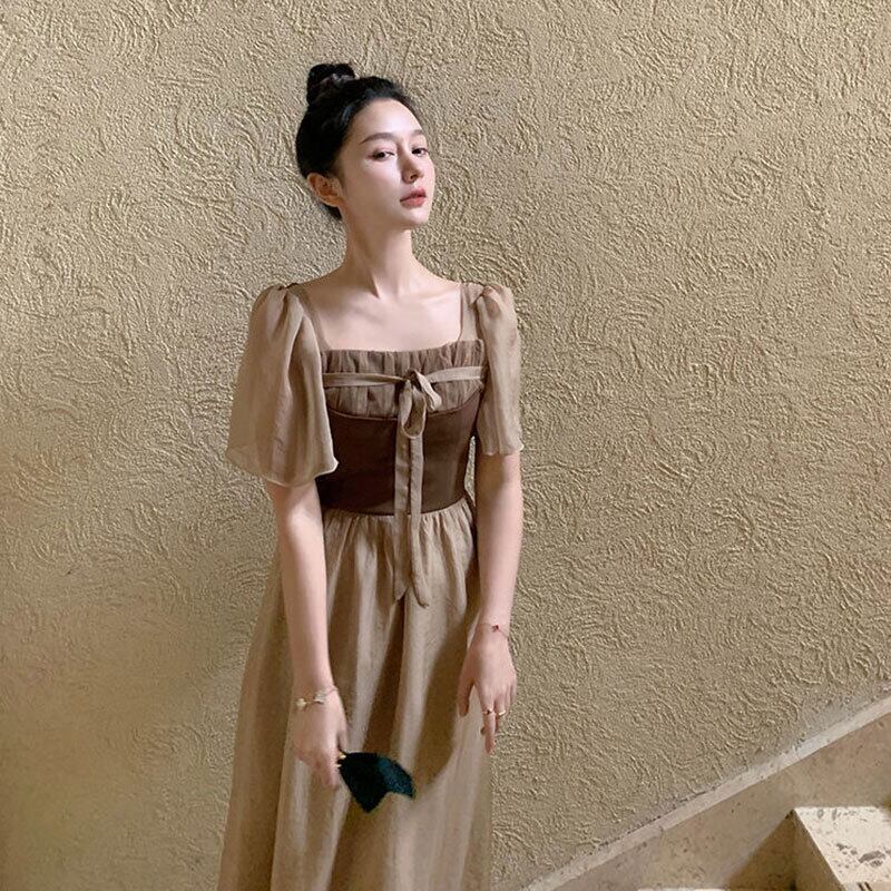切り替えデザイン感ファッションロングデートワンピース【DL-2942】