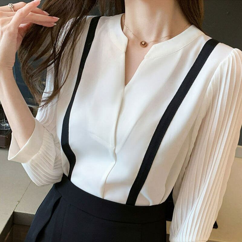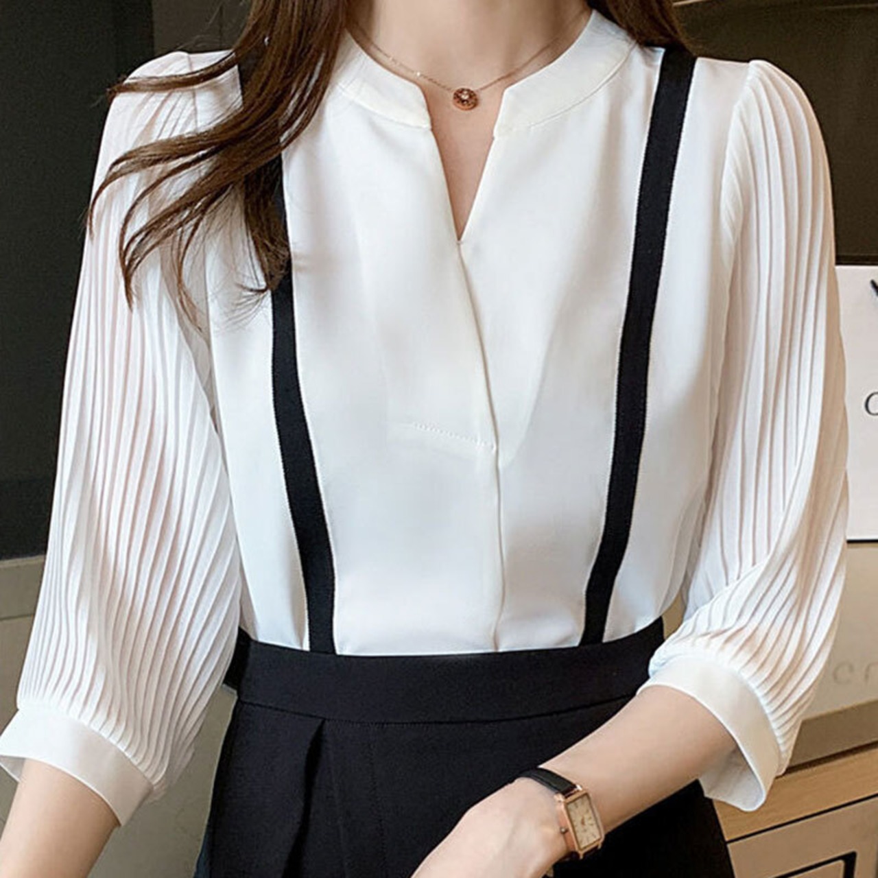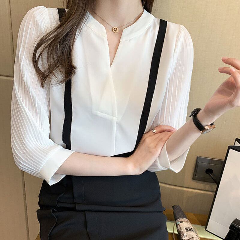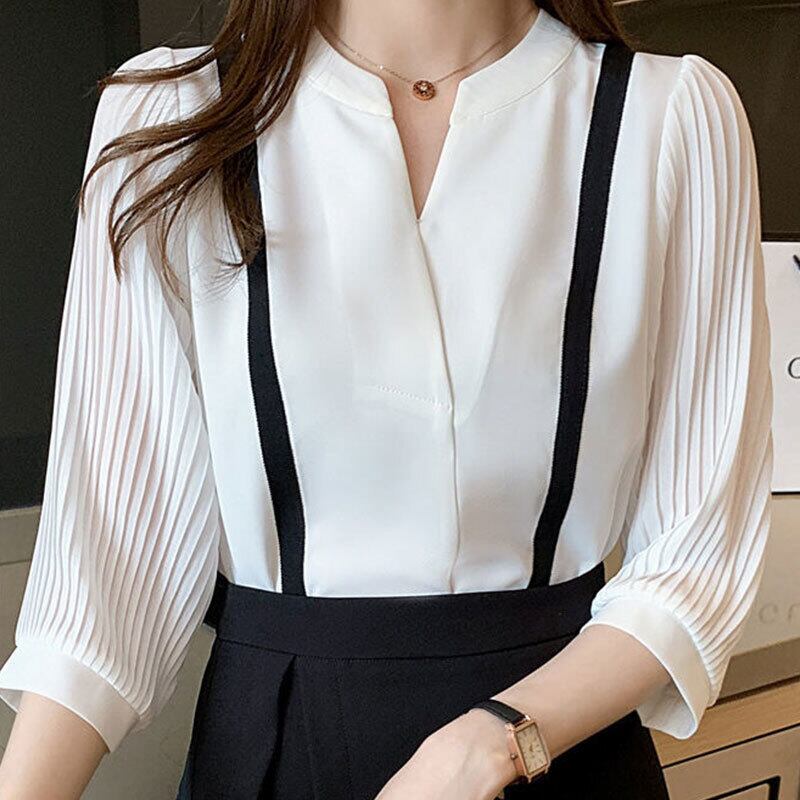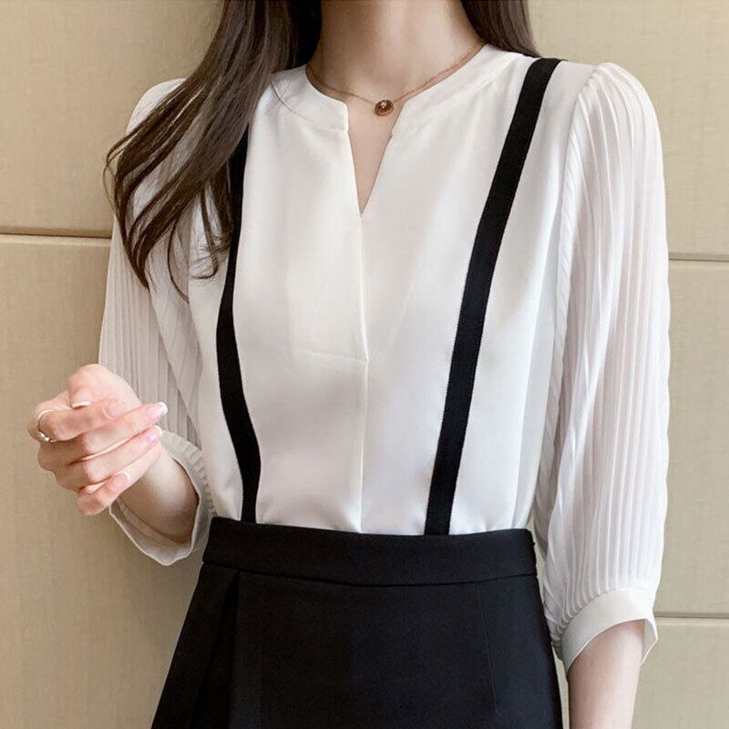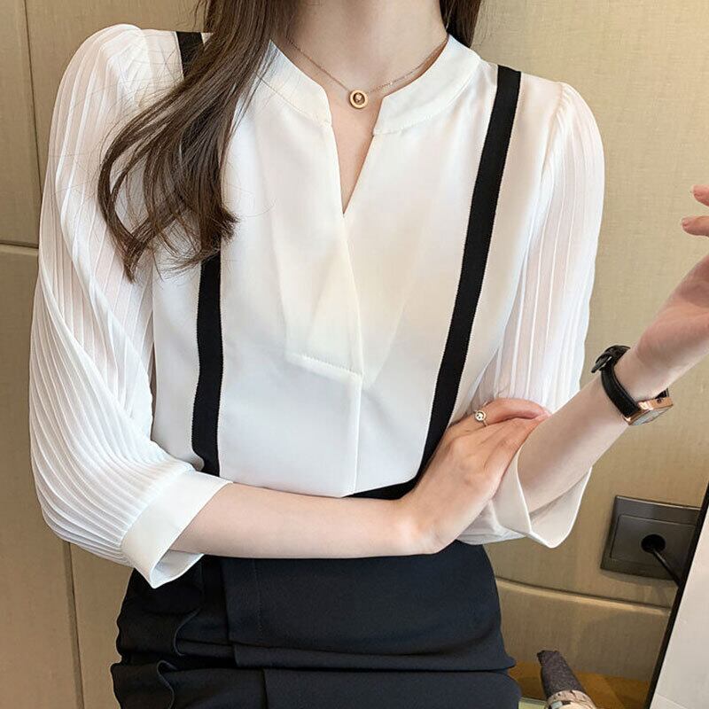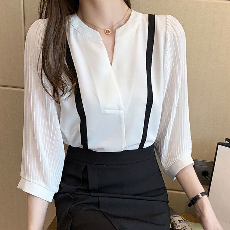 Vネックシフォンブラウス・シャツトップス【DL-2951】