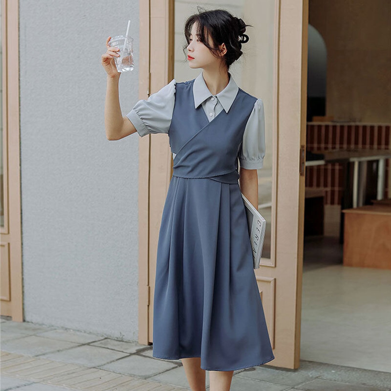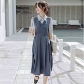 配色切り替えデザイン感ロングデートワンピース【DL-2954】