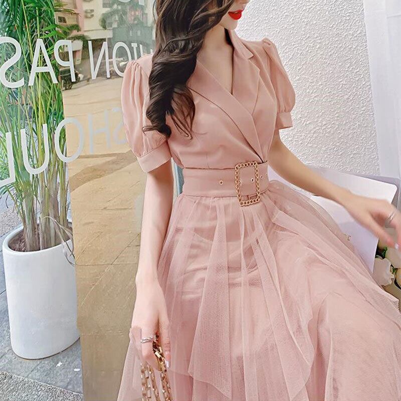 不規則メッシュ切り替えデートワンピース【DL-2957】