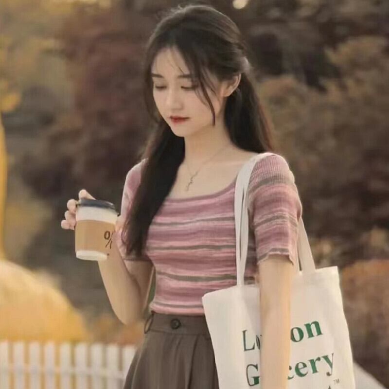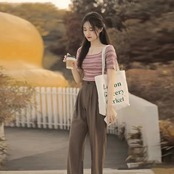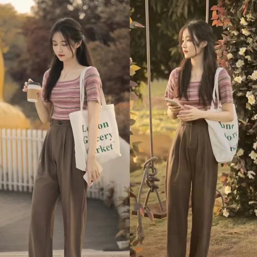 ストライプコーデしやすいニットセータートップス&スーツパンツセットアップ【DL-2960】