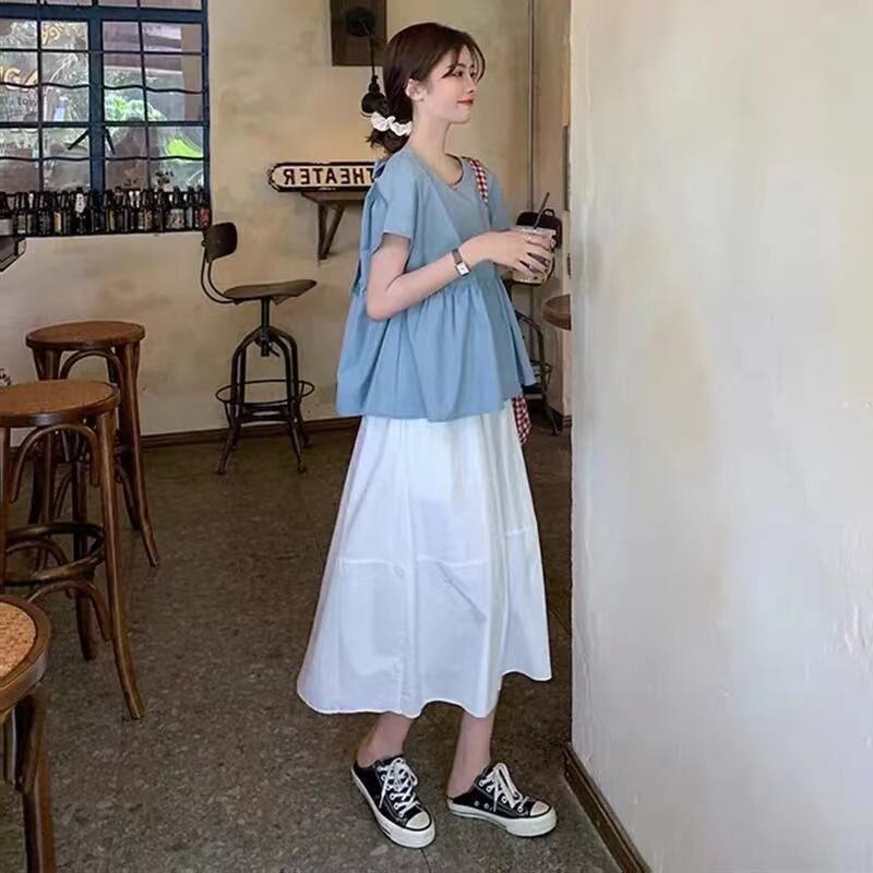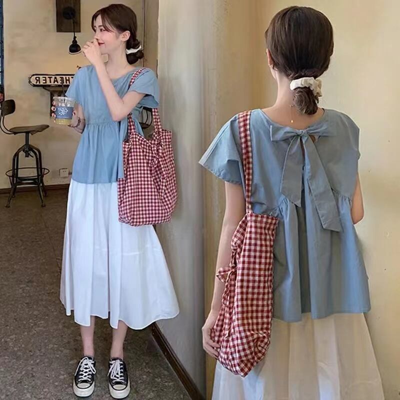 蝶結飾る無袖トップス&無地ロングスカートセットアップ【DL-2964】