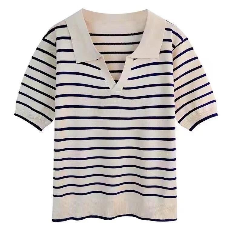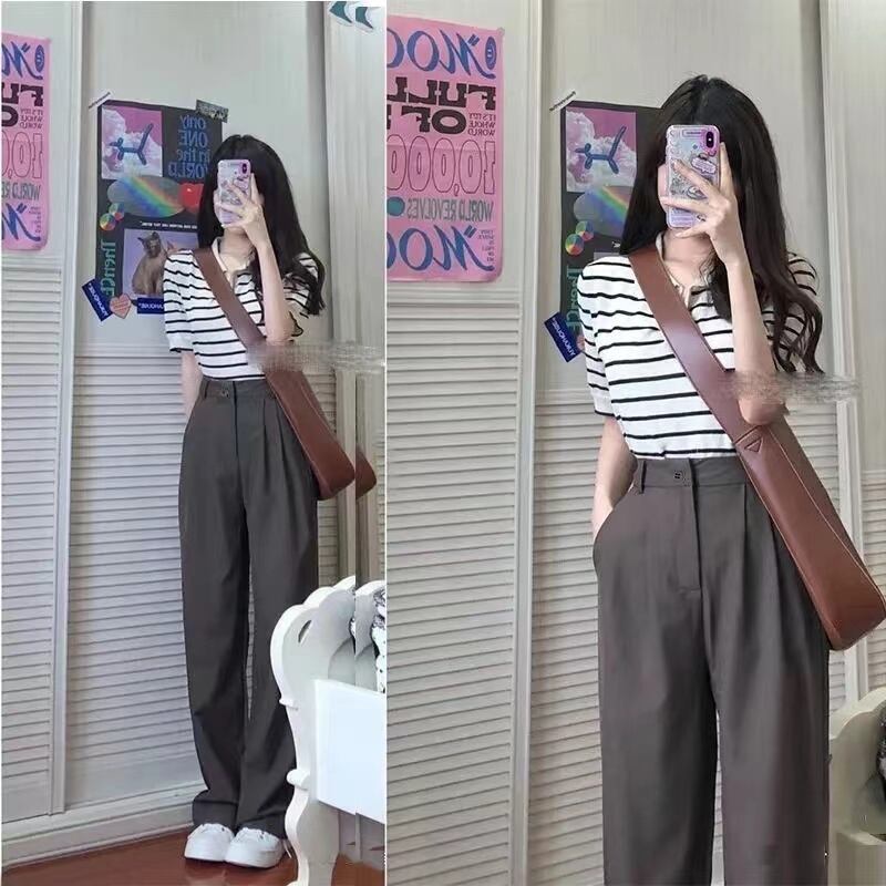 ストライプトップス&ワイドレッグパンツセットアップ【DL-2965】