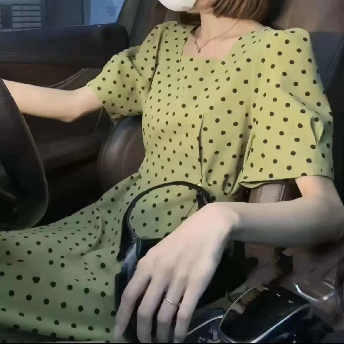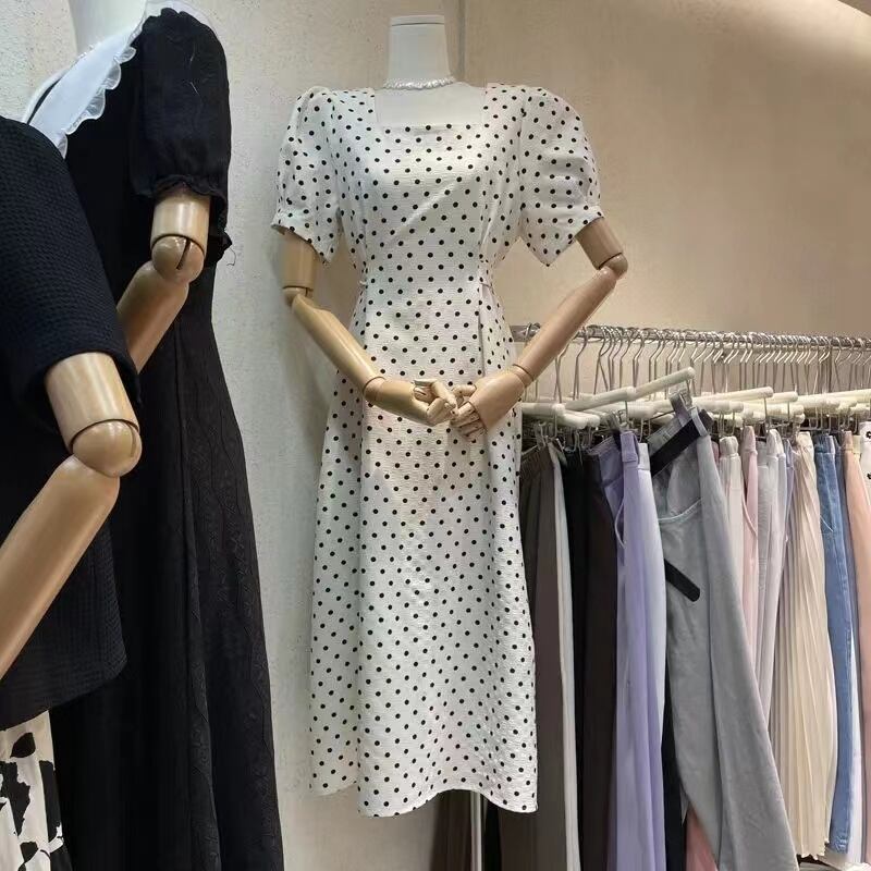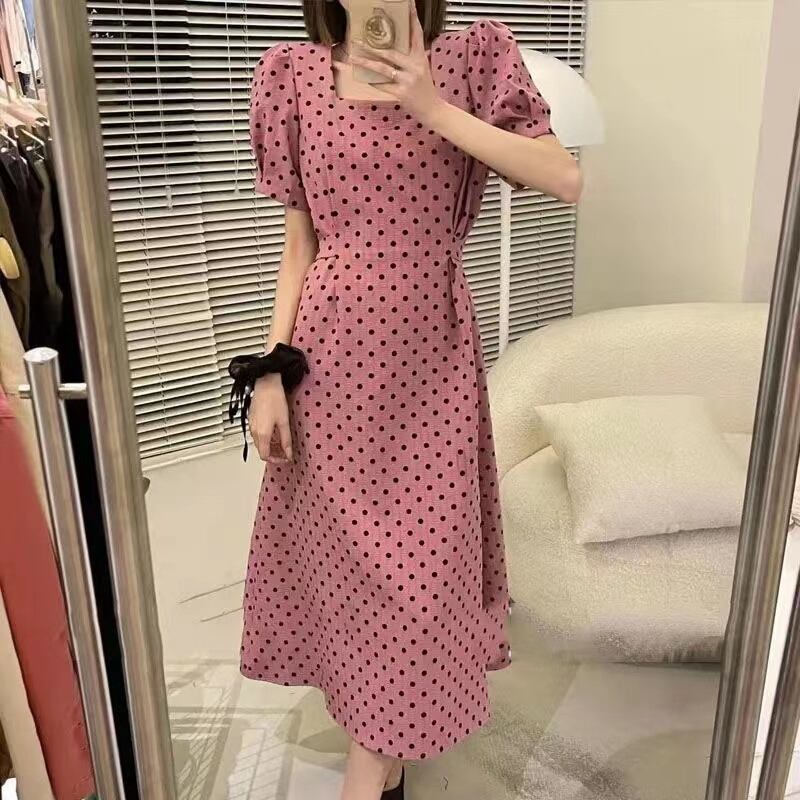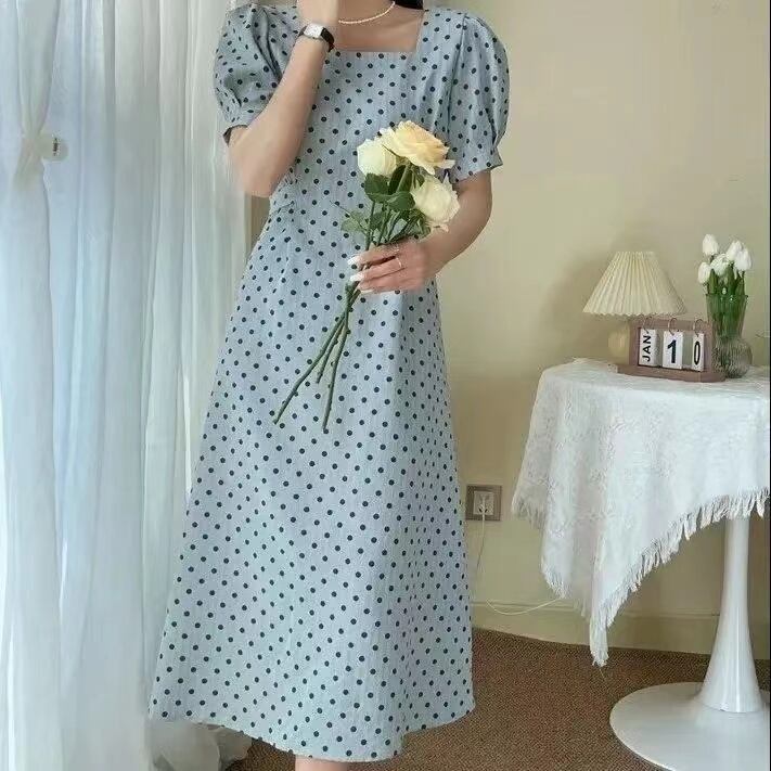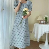INS人気商品パフスリーブ水玉ロングデートワンピース【DL-2974】