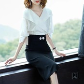 高級感ファッションシャツ·ブラウストップス&無地スリットスカートセットアップ【DL-2978】