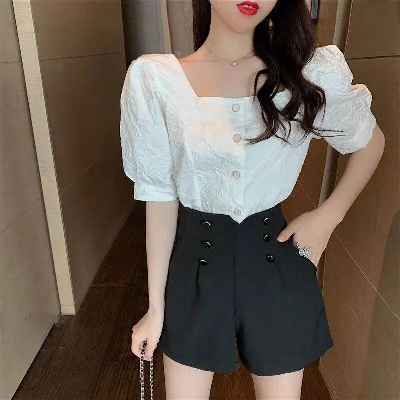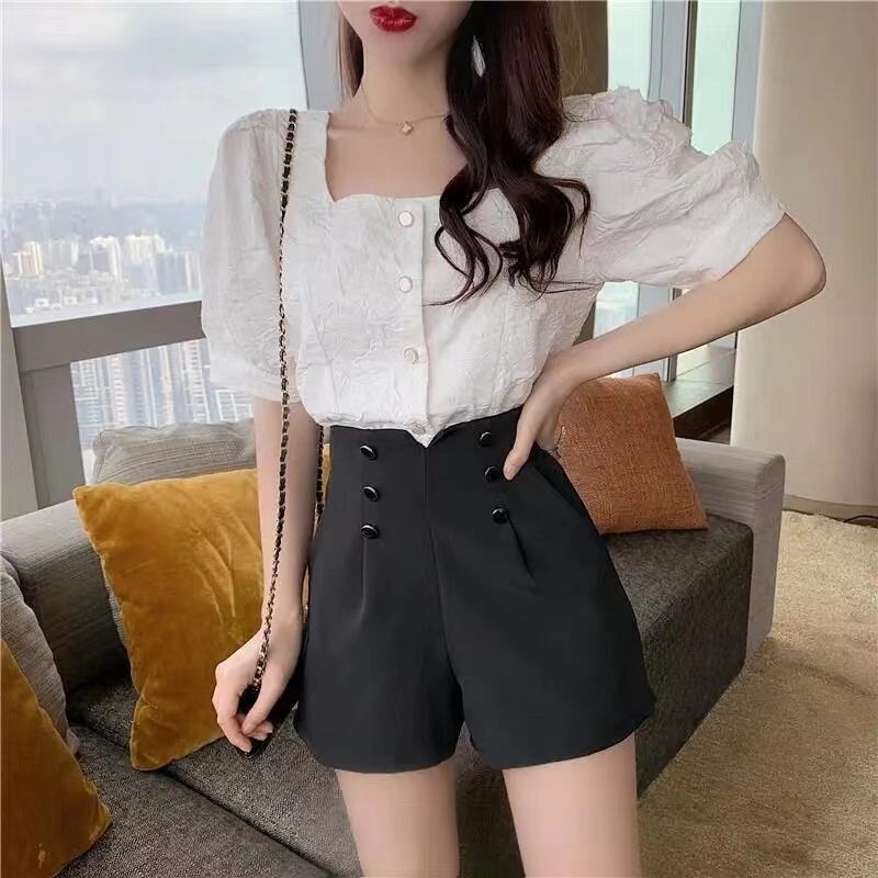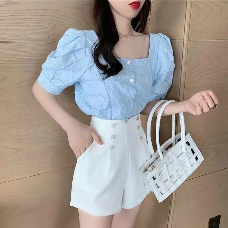 パフスリーブコーデしやすいトップス&ハイウエストショーツセットアップ【DL-2985】