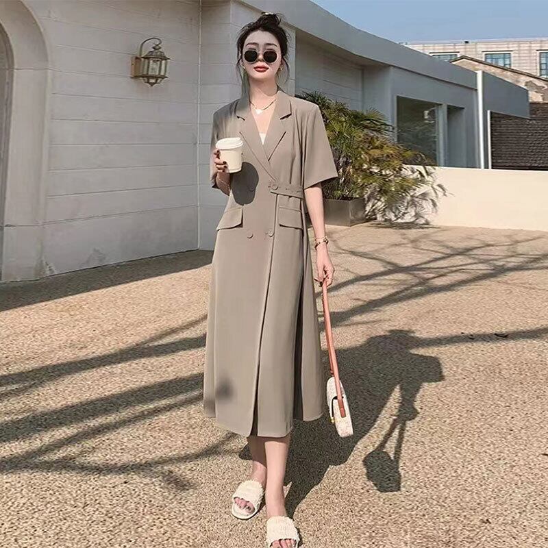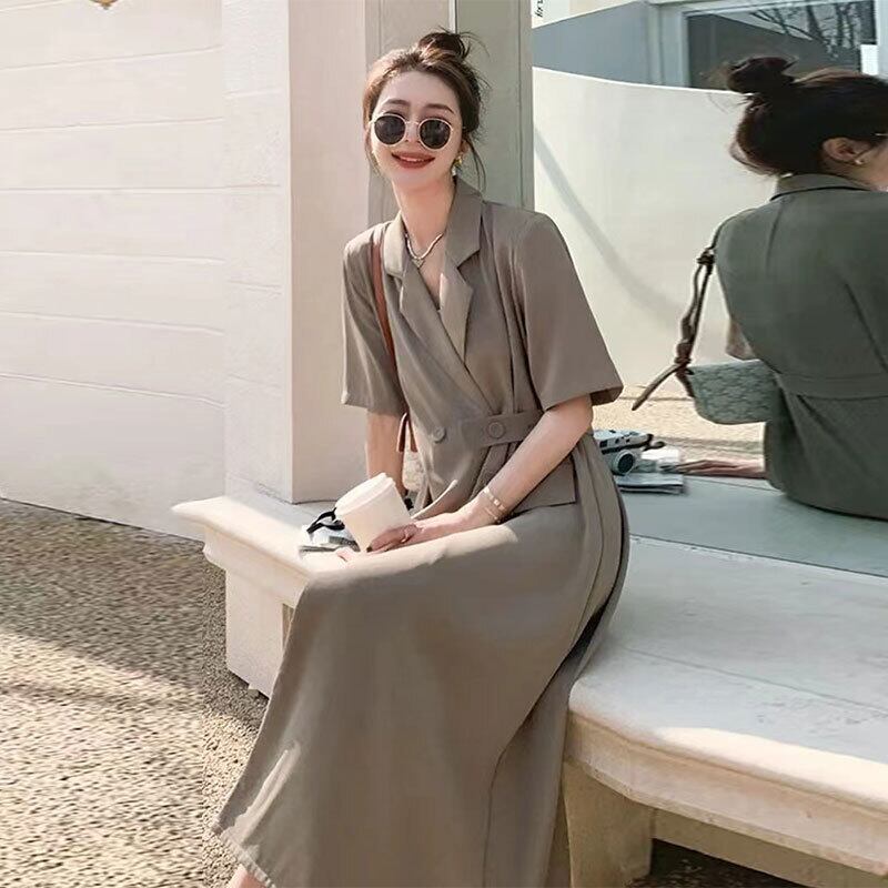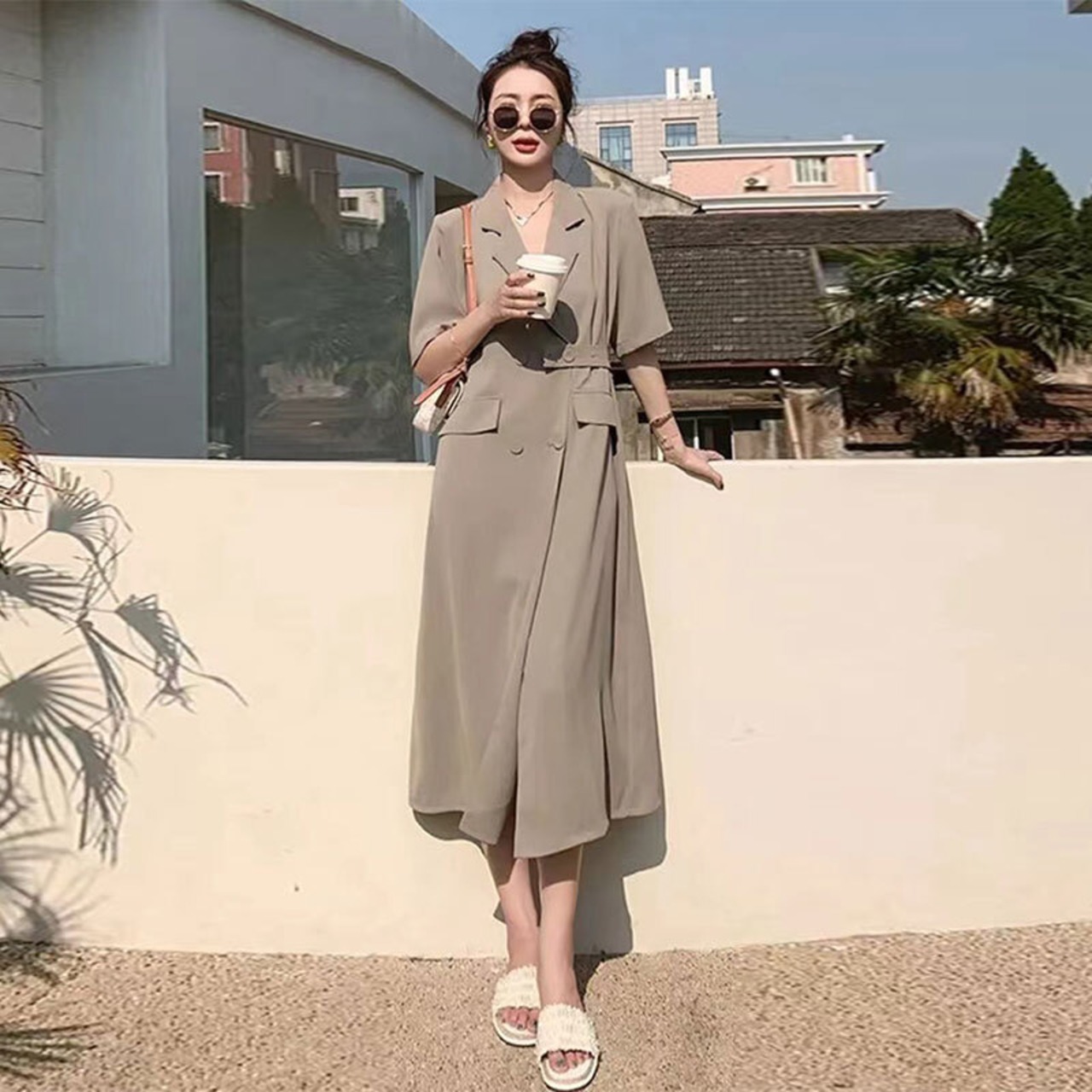 高級感半袖通勤ゆったり着痩せ効果ロングデートワンピース【DL-3003】