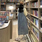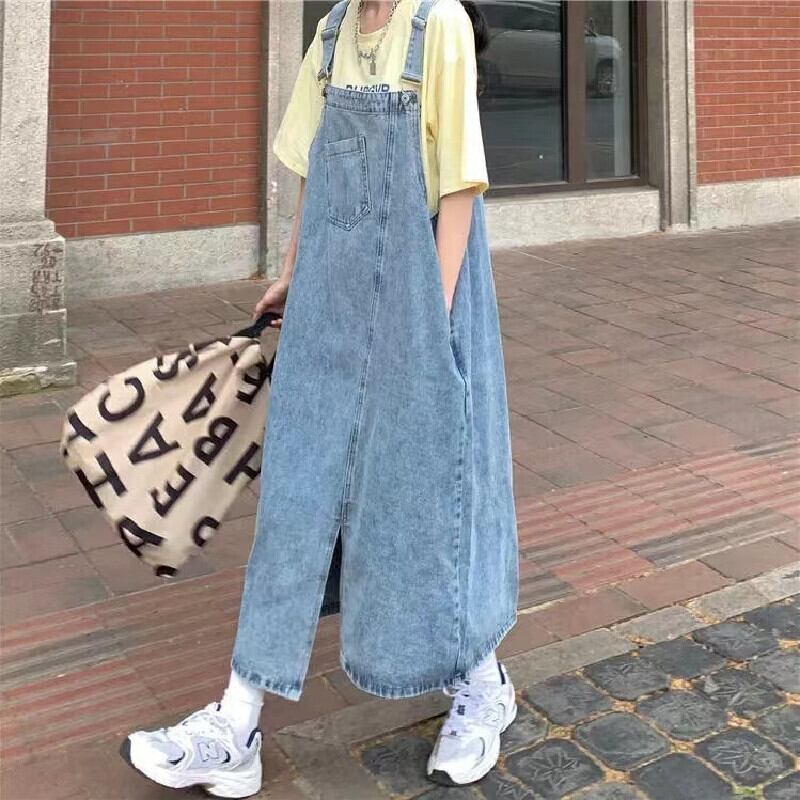 デニム不規則デザインスタイルスリットストラップカジュアルワンピース(トップスなし)【DL-3011】