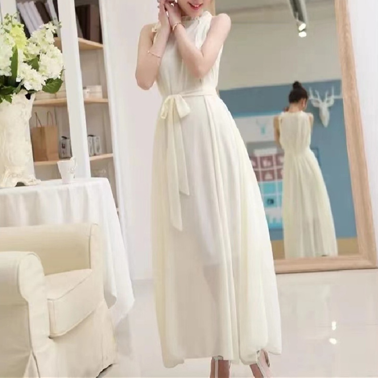 ゆったりクルーネックシフォンロングデートワンピース【DL-3023】