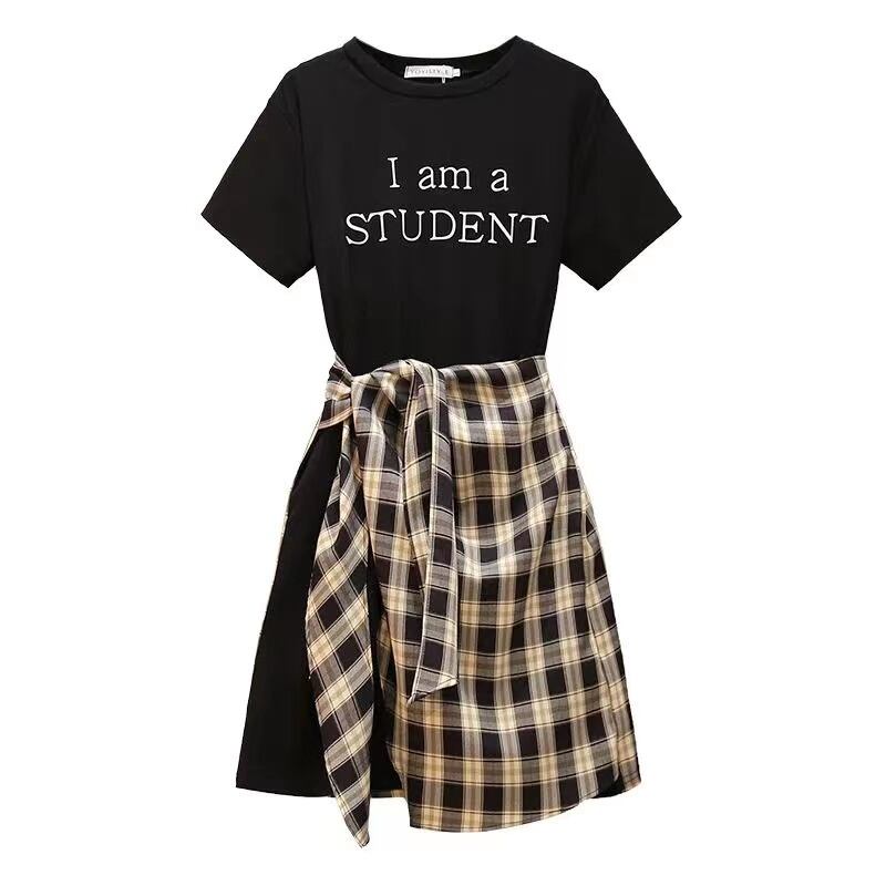チェック柄切り替えデザインスタイル着痩せ効果デートワンピース【DL-3052】