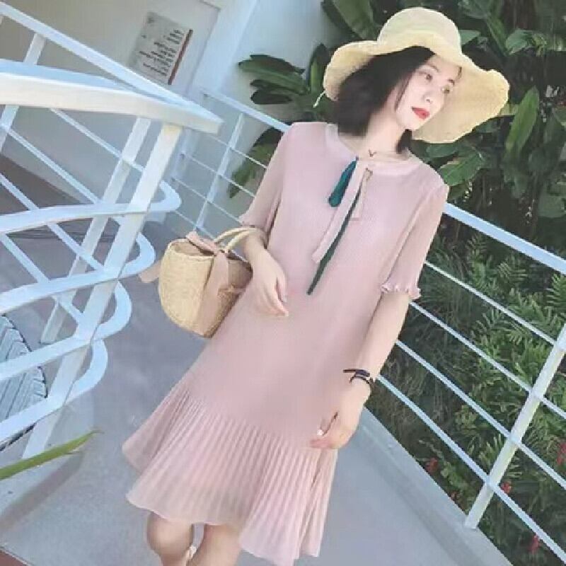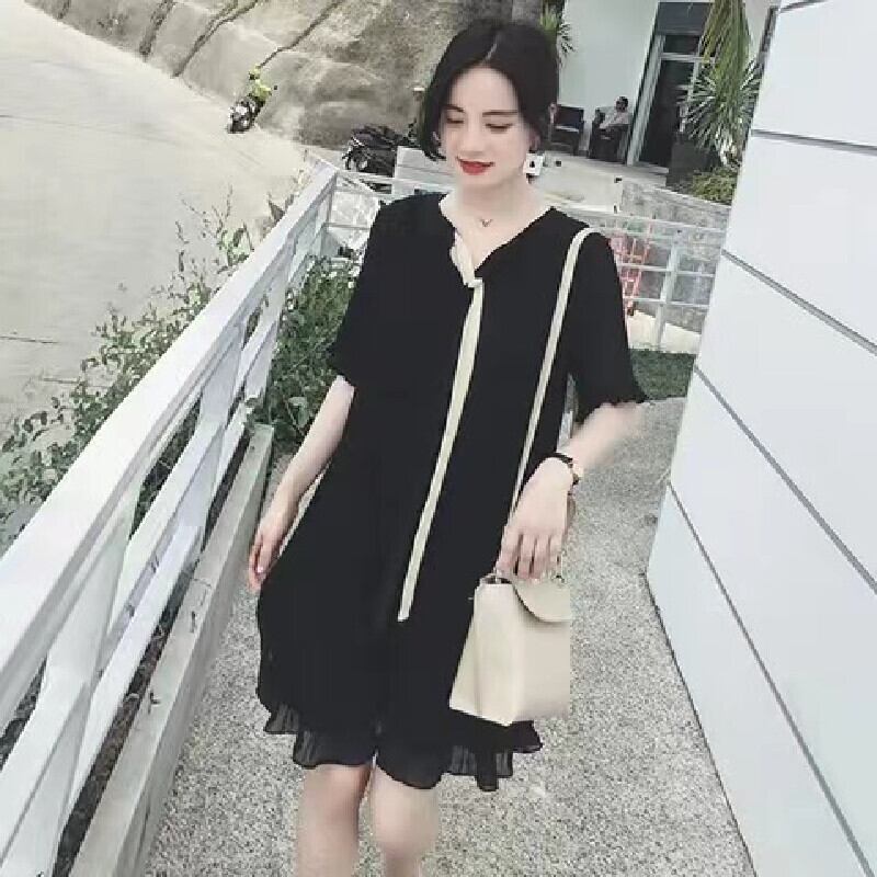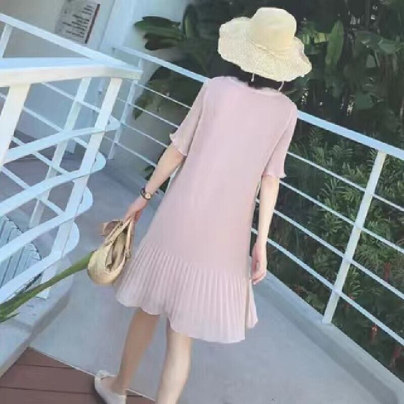 シフォン無地気質ファッションゆったりカジュアルワンピース【DL-3063】